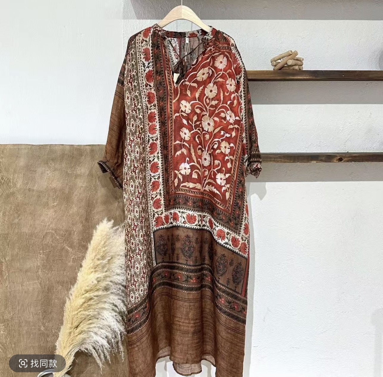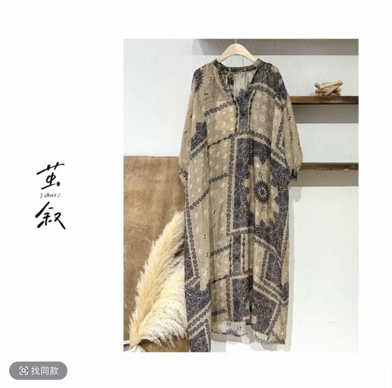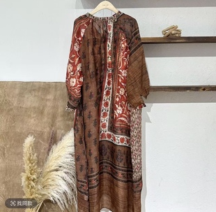连衣裙 JIAN.XU 系带半袖 100%苎麻法式 裙长125胸围160 波西米亚