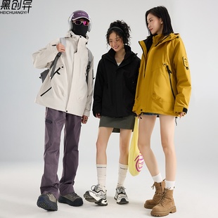 骆驼户外谷子黄色冲锋衣女款 三合一防水防风登山服三防夹克外套男