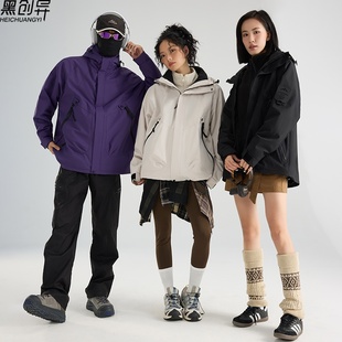 积能户外软壳外套女秋冬一体加绒跑步防风防水徒步登山男士 冲锋衣