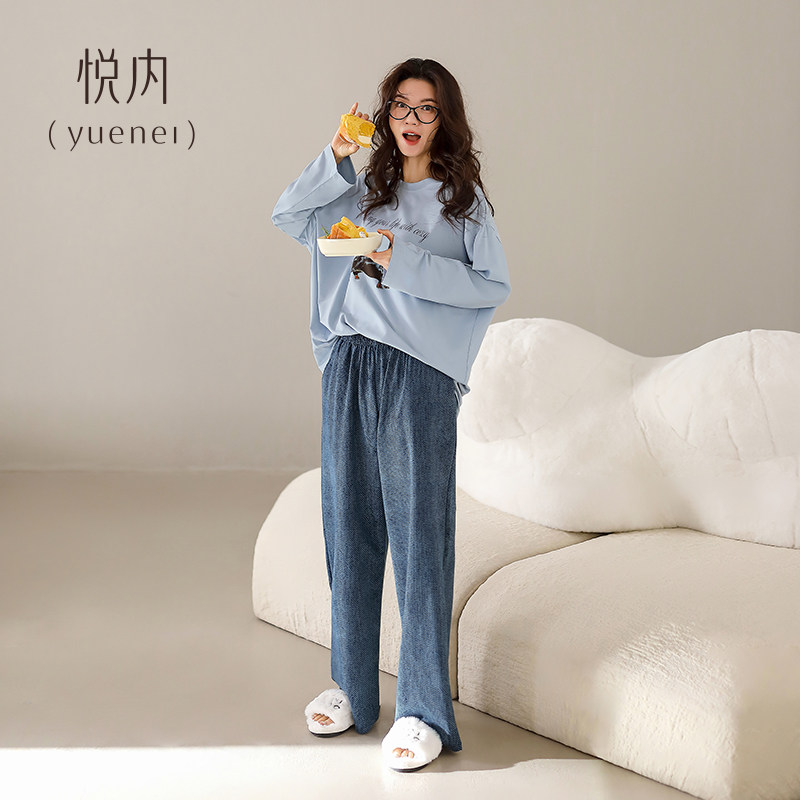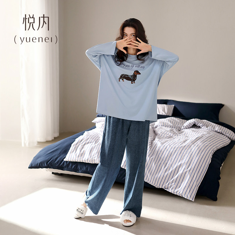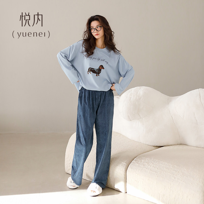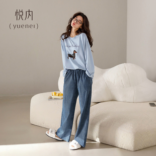 家居服时尚 悦内睡衣女春秋款 长裤 纯棉长袖 宽松慵懒可外穿小狗 秋季