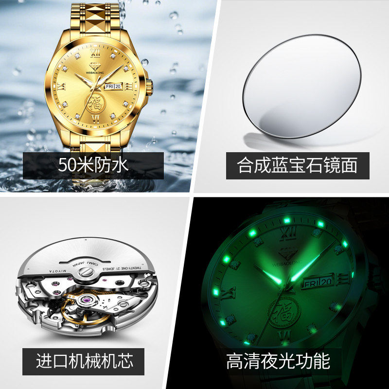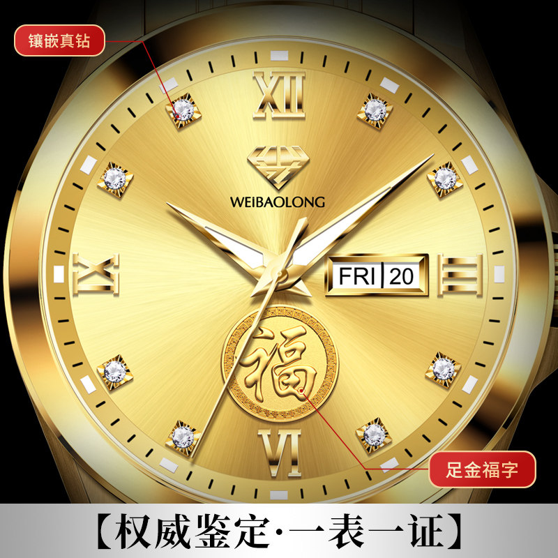 男表送老公父亲节礼 进口机芯正品 真金真钻手表男士 机械表瑞士男款
