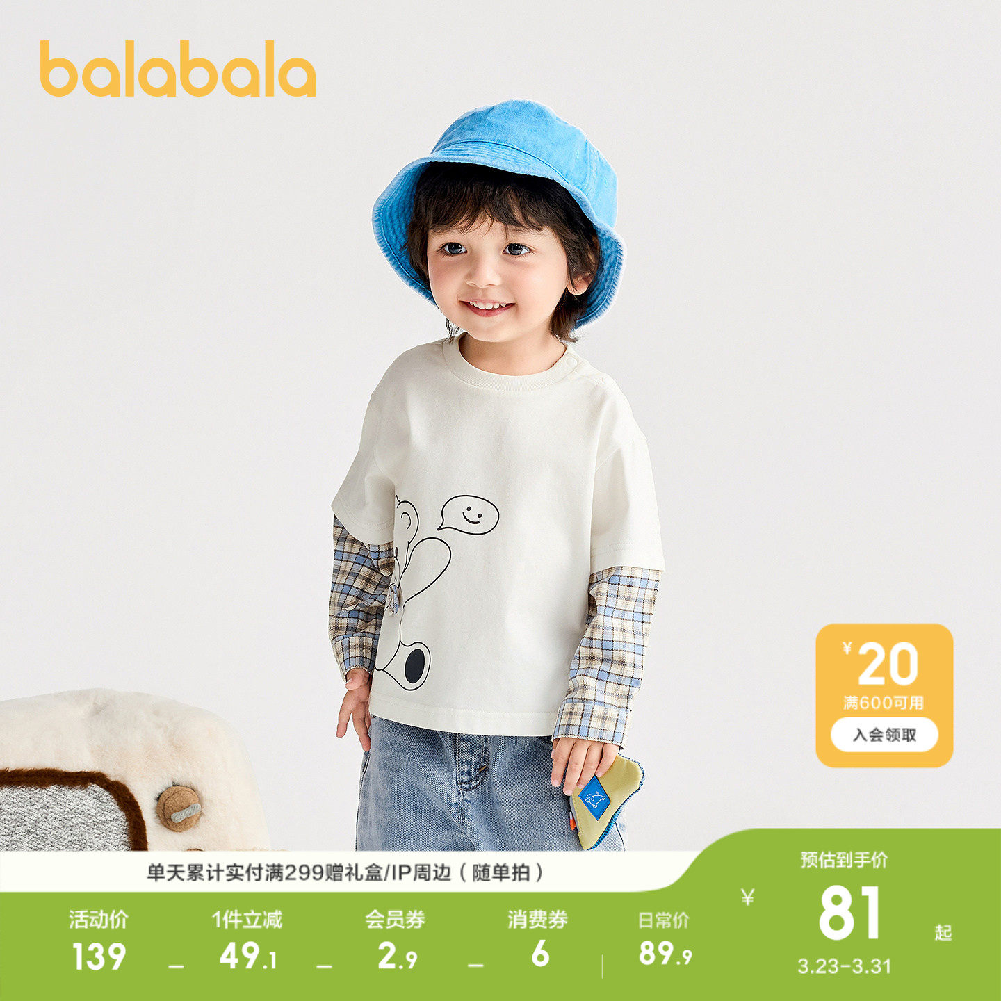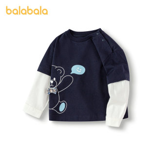 男童时尚 t恤假两件春秋装 上衣速干抗菌打底 宝宝长袖 巴拉巴拉童装