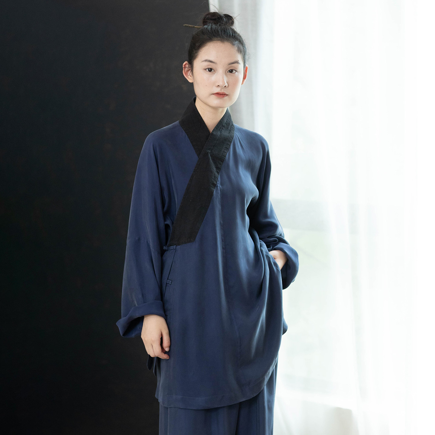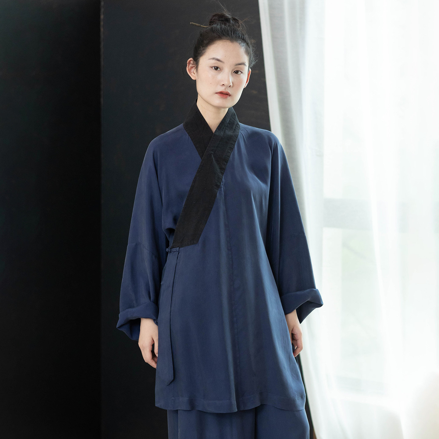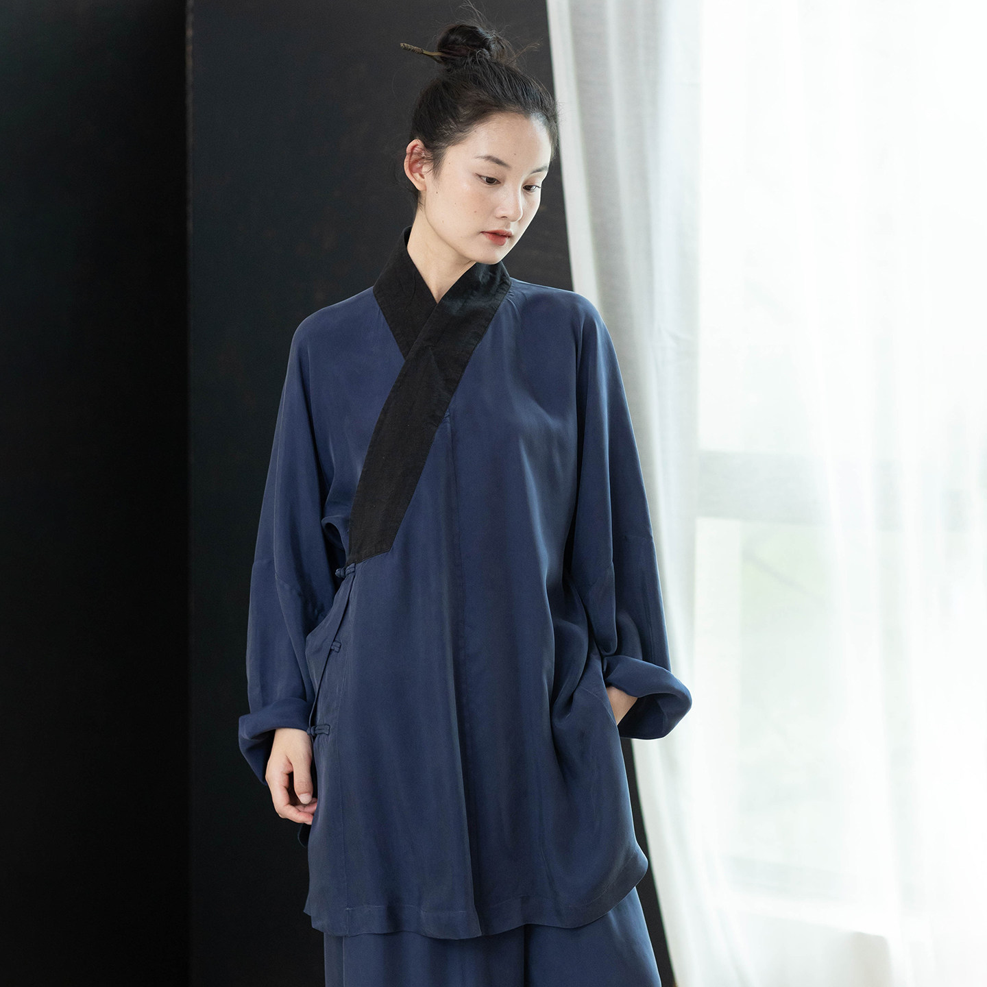 大拙东方美学禅意禅修铜氨丝拼接斜襟盘扣衬衫 240227