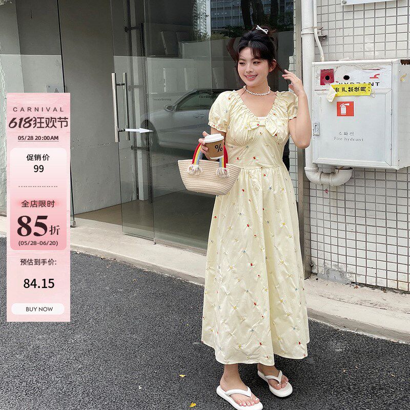 复古绣花连衣E裙大码 夏装 法式 2025新款 胖mm超好看独特漂亮裙 女装