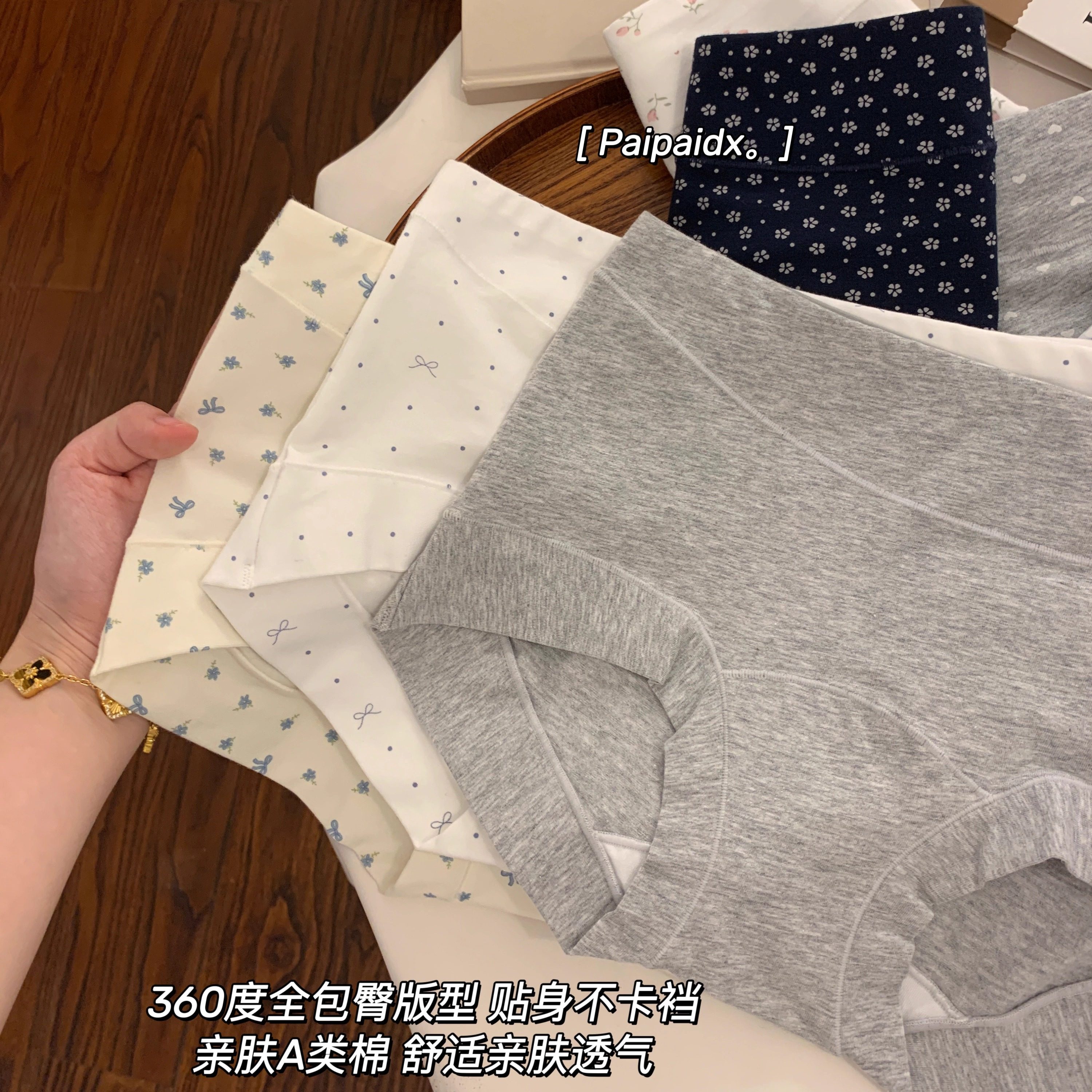 女士10A抑菌加长纯棉档中腰包臀不卡档蕾丝平角裤 国风礼盒装 内裤