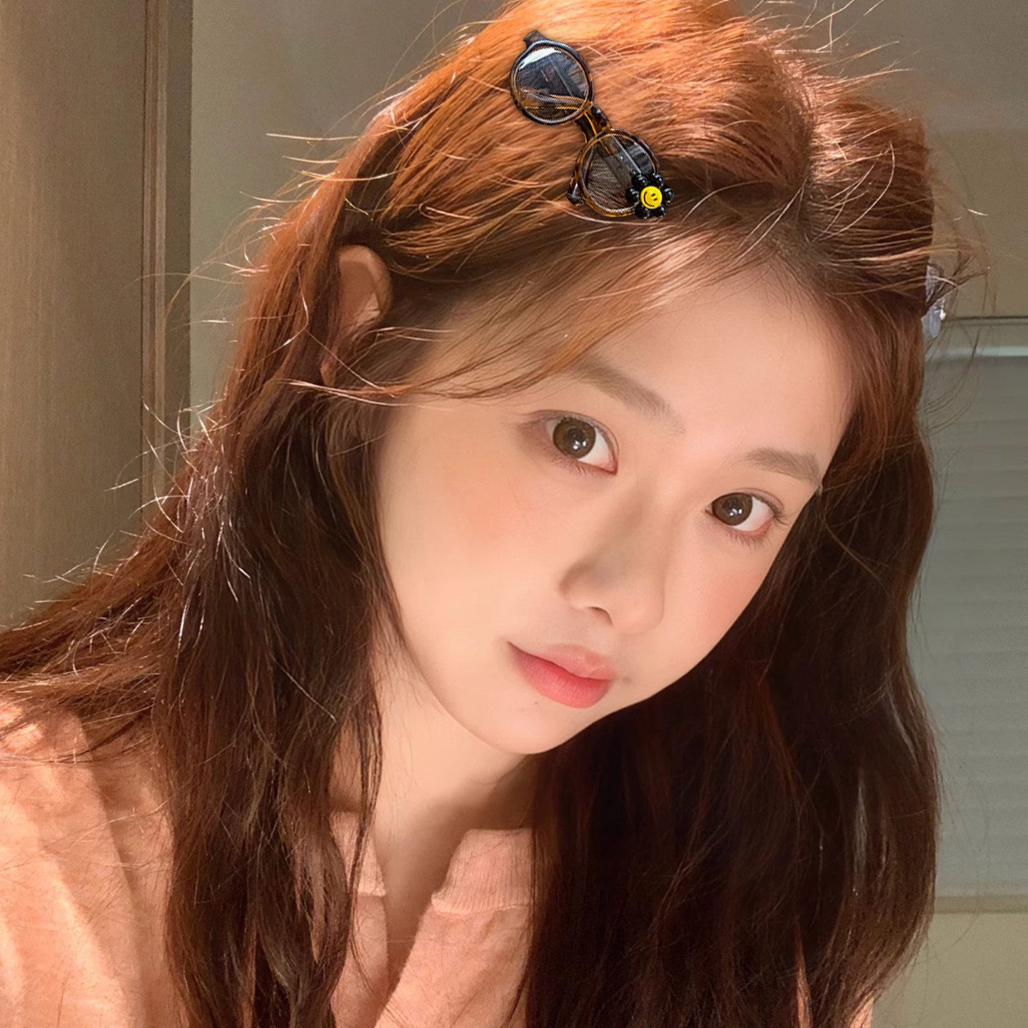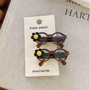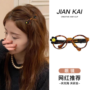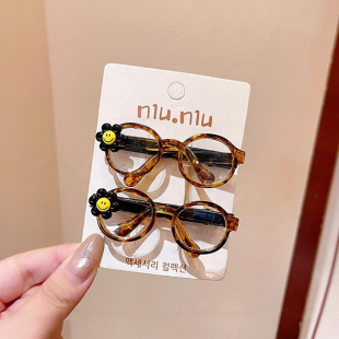可爱卡通笑脸眼镜发夹女韩系复古豹纹茶色刘海夹侧边碎发夹子头饰