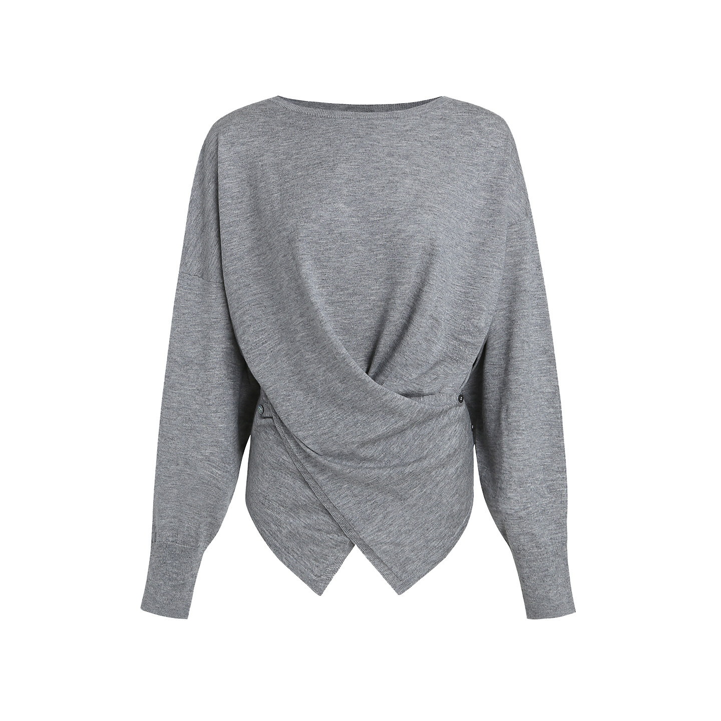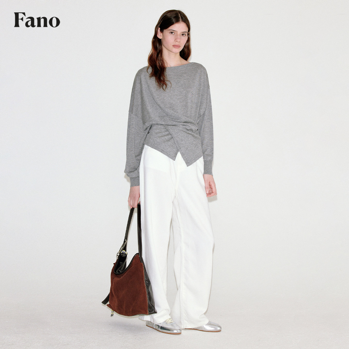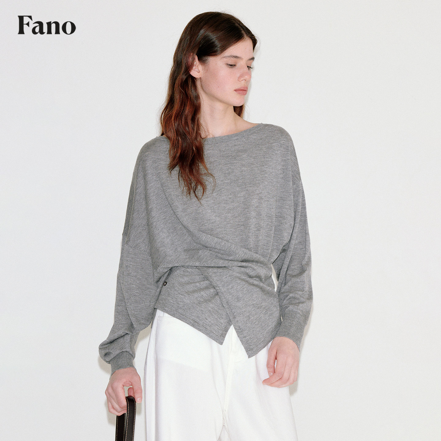 上衣 圆领宽松廓形针织衫 范洛Fano 慵懒高级感解构交叉门襟蝙蝠袖