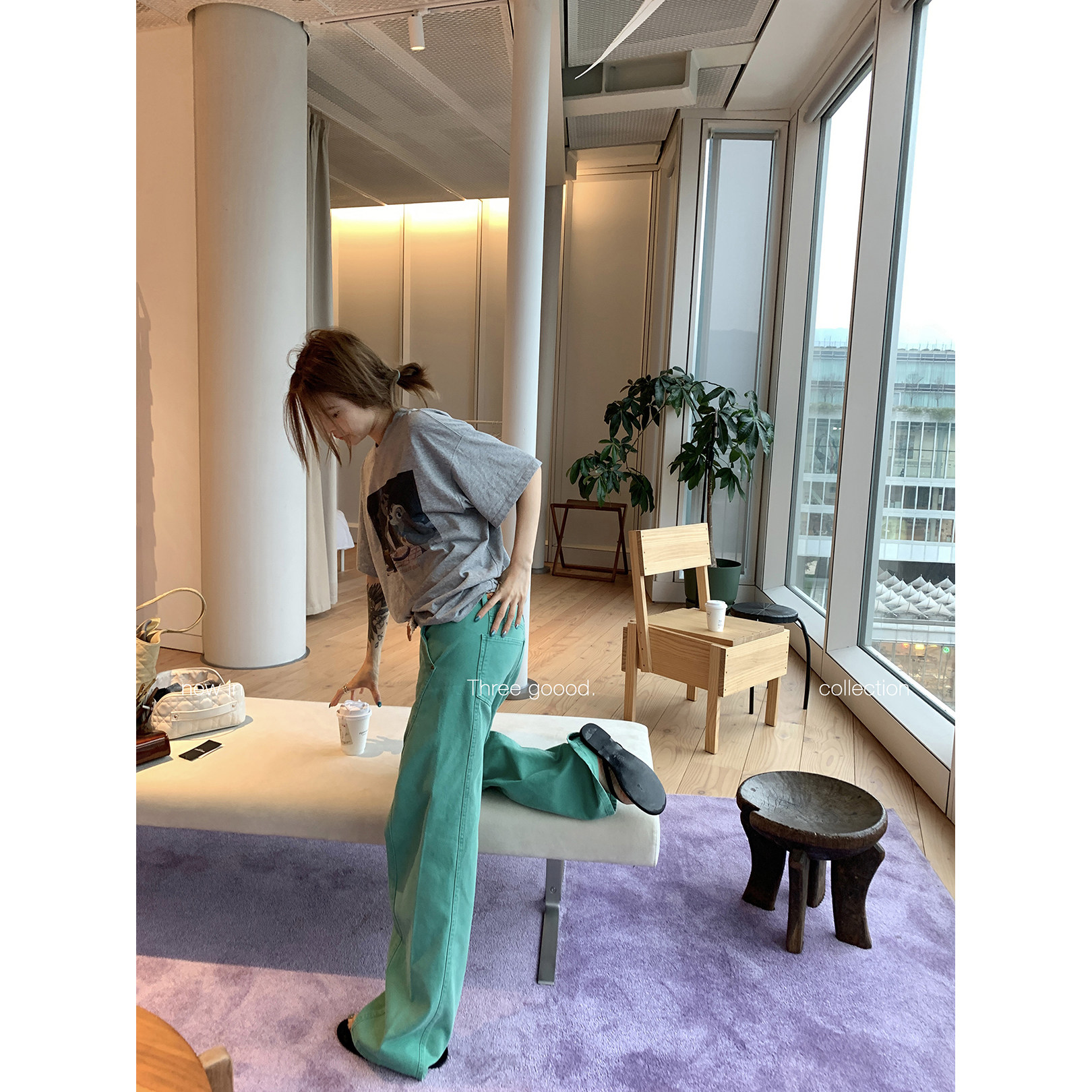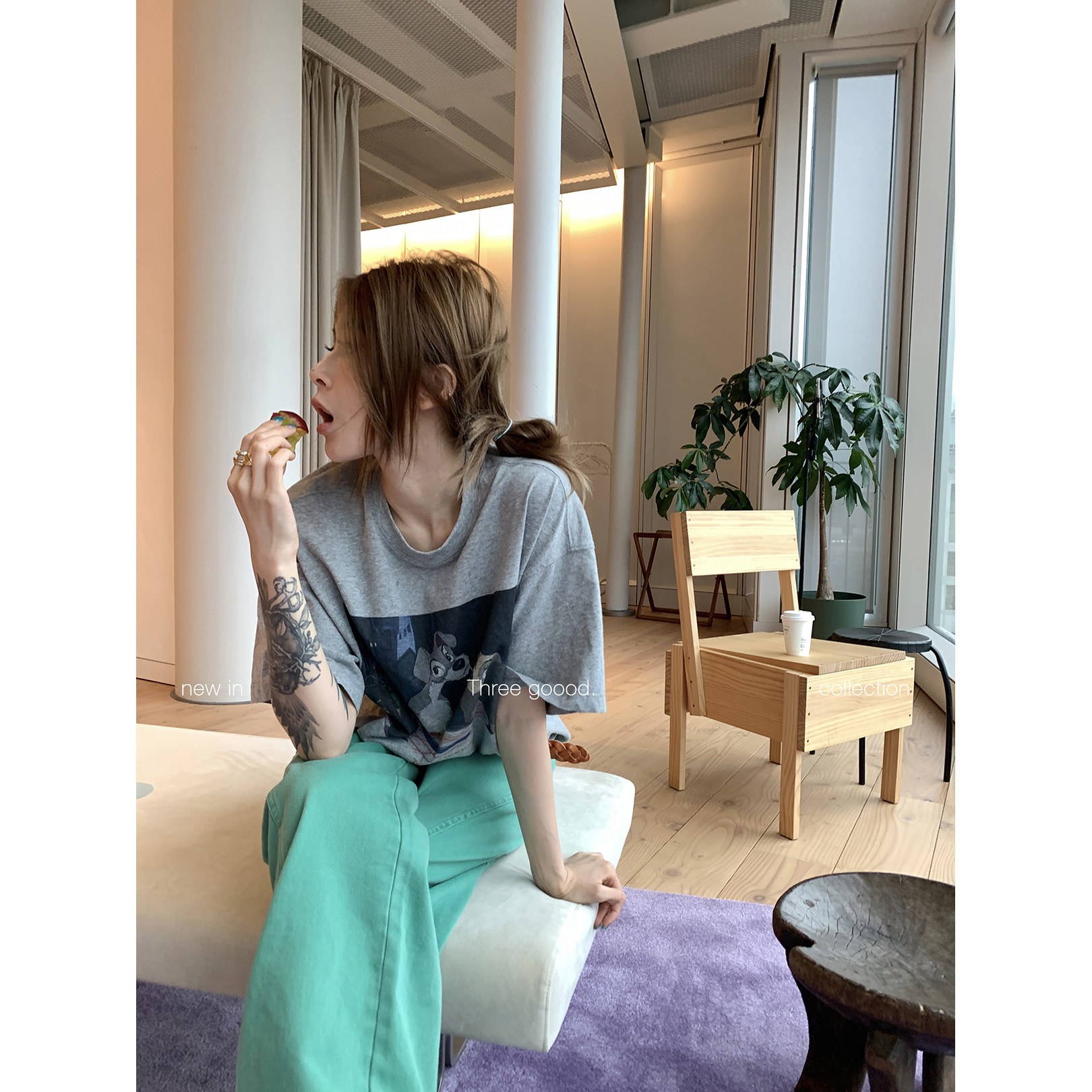 GOOOD 裙帘减龄套装 三吉 T恤 松弛甜酷 美丽狗动漫印花大版 THREE