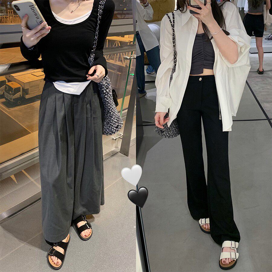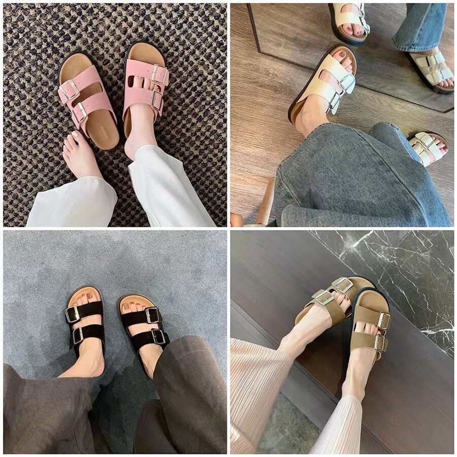 iFASHION轻奢葡萄妈同款 女真皮厚底双扣带勃肯凉拖外穿一字带 拖鞋