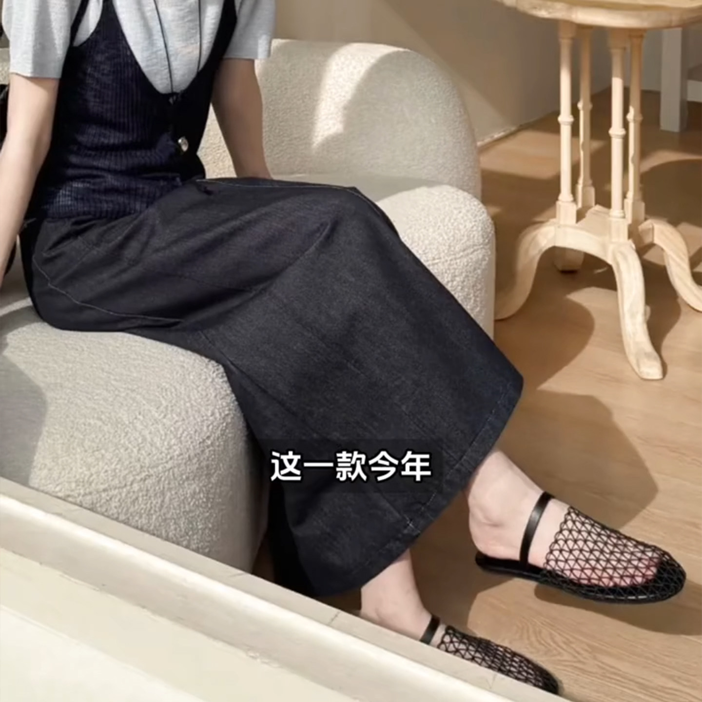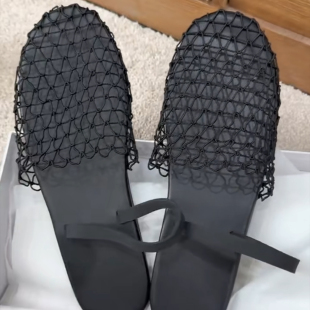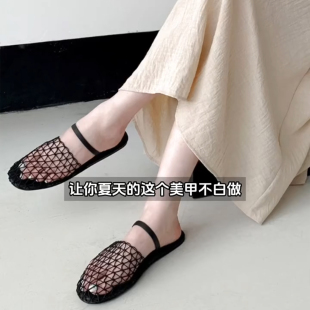 包头平底小众透气黑色网状休闲鞋 女夏季 镂空编织罗马凉鞋 2026夏季