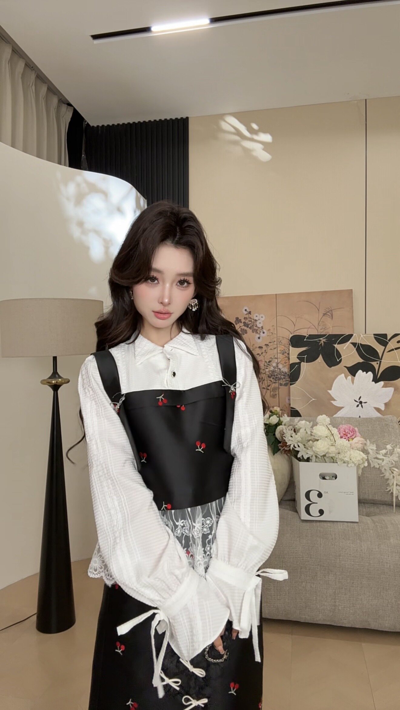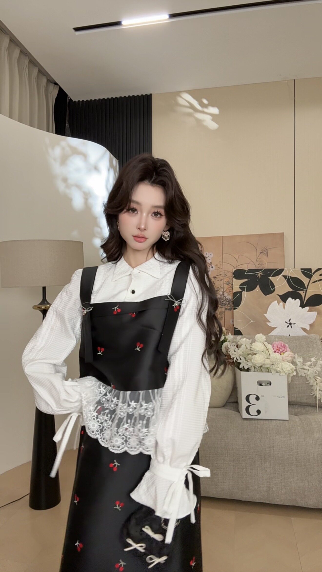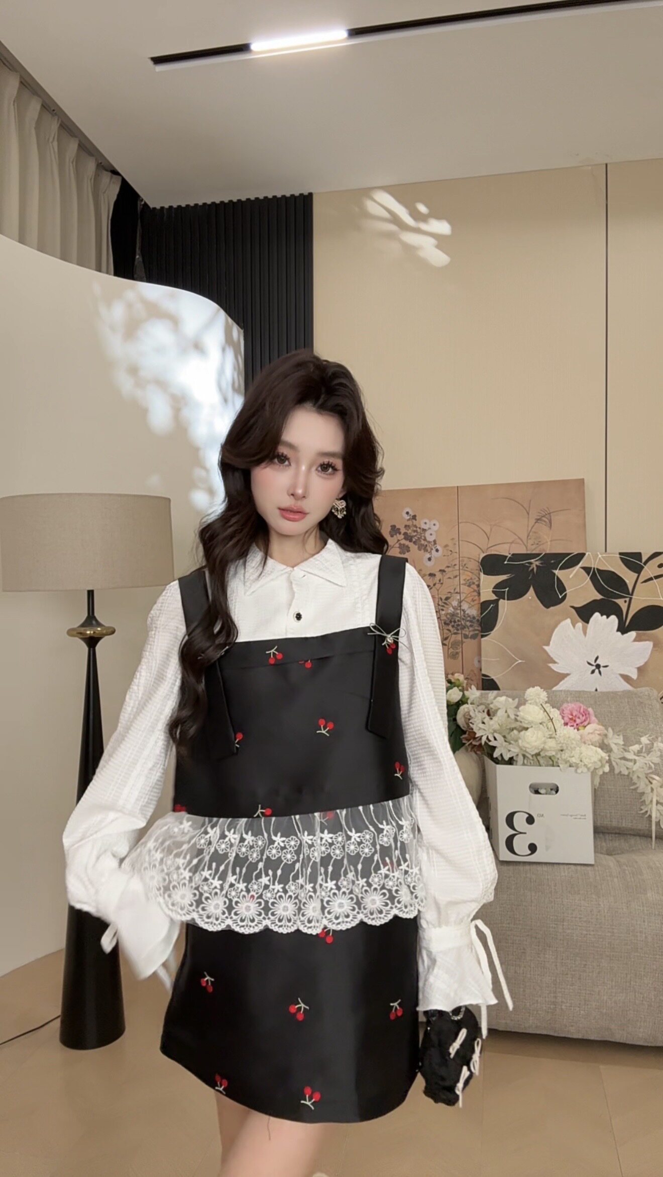 洋气时尚 品质女装 休闲原创小众老钱风 樱落白纱套装 可可可欣