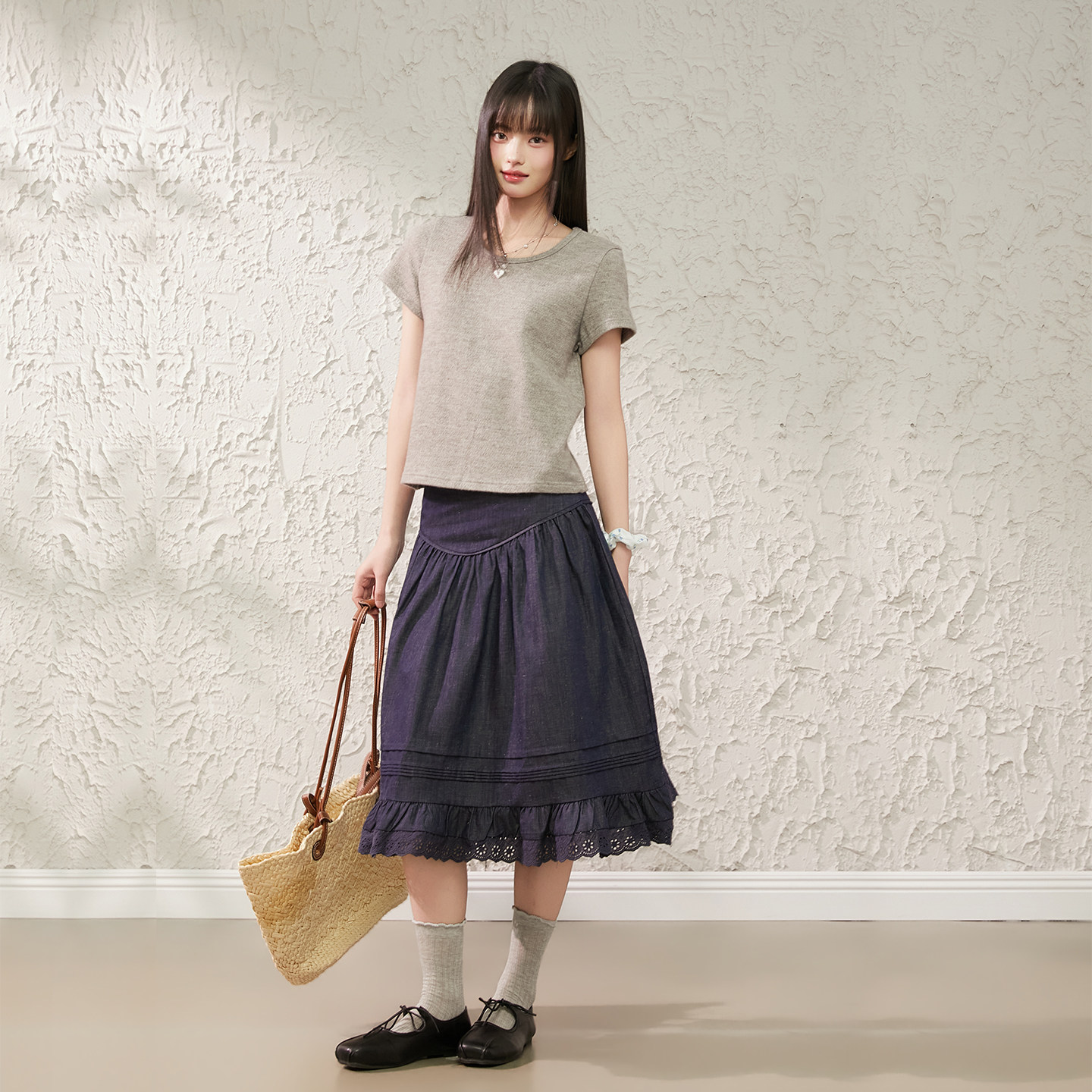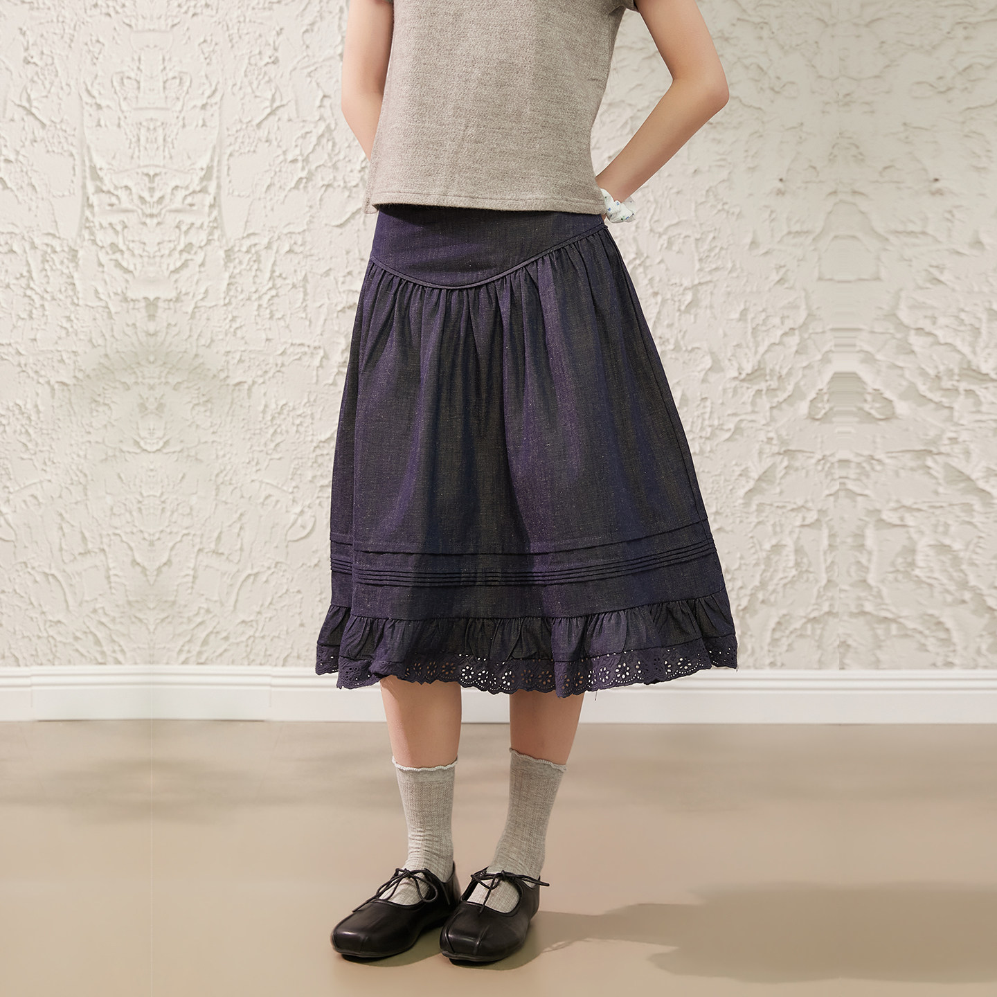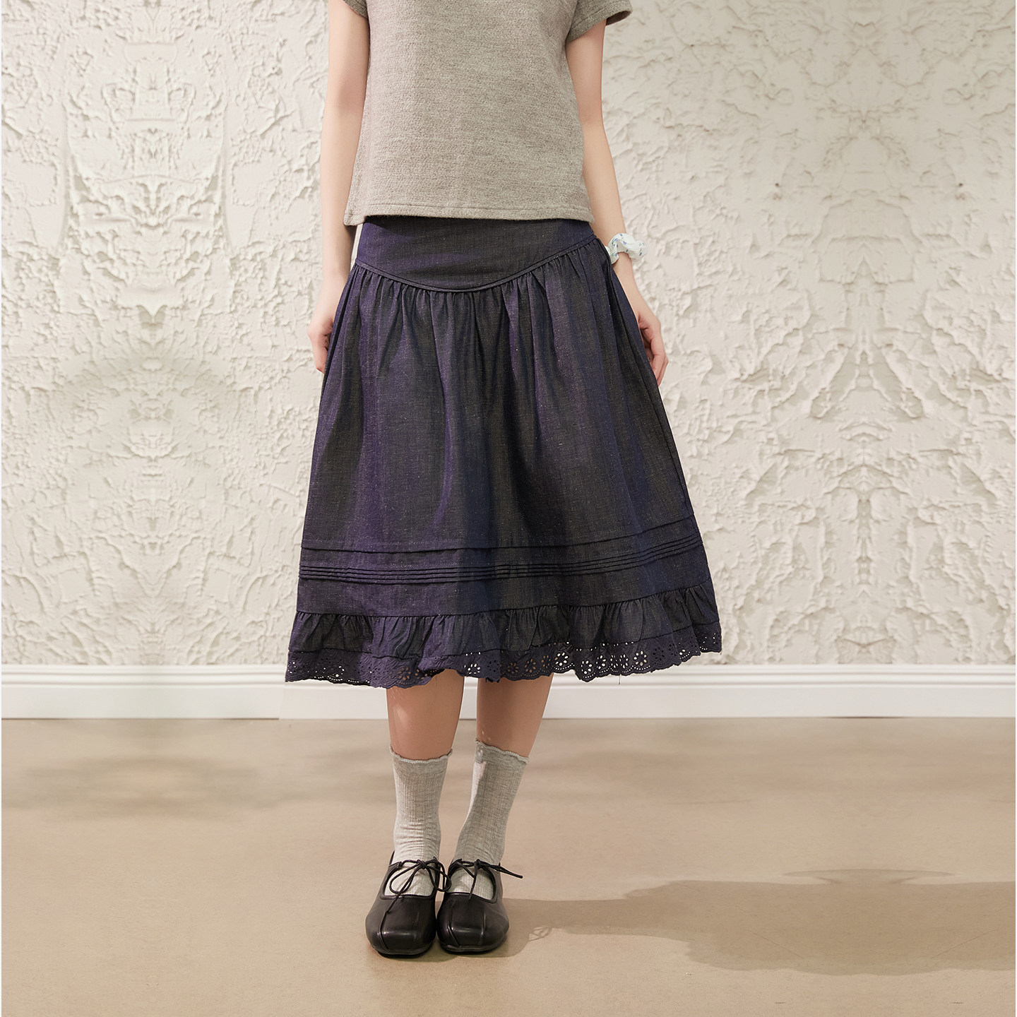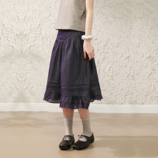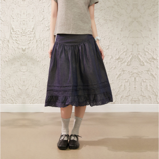 King Prince复古蕾丝拼接A字半身裙女高腰显瘦百搭氛围感中长裙