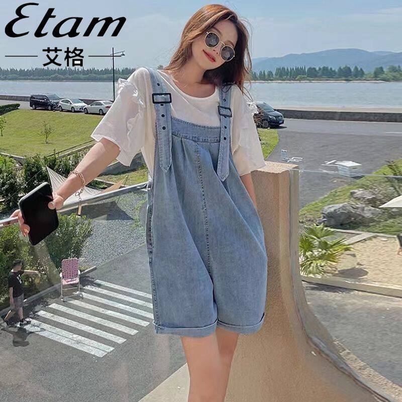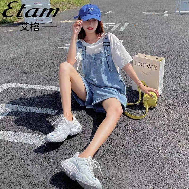 宽松显瘦连体阔腿裤 韩版 女ins百搭春夏2025新款 减龄牛仔背带短裤