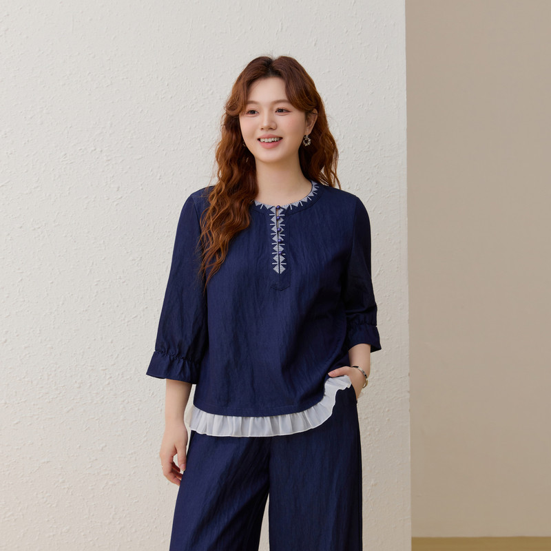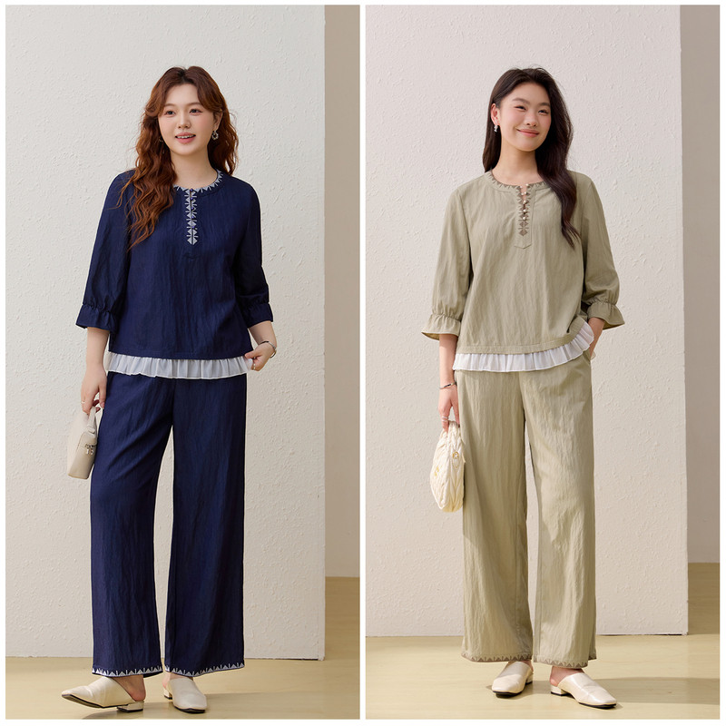 波嬉假日 胖mm2026夏装 轻薄民族风两件套装 女装 新款 纤莉秀大码