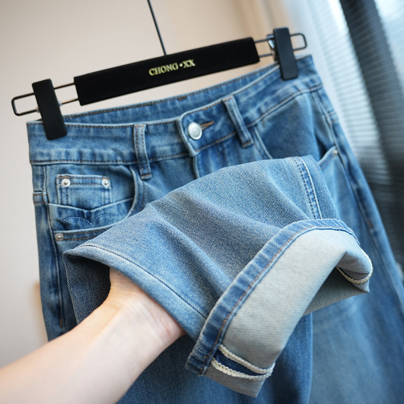 春新款 虫小小 女休闲拖地长裤 直筒牛仔裤 A111J 四面弹高腰显瘦窄版