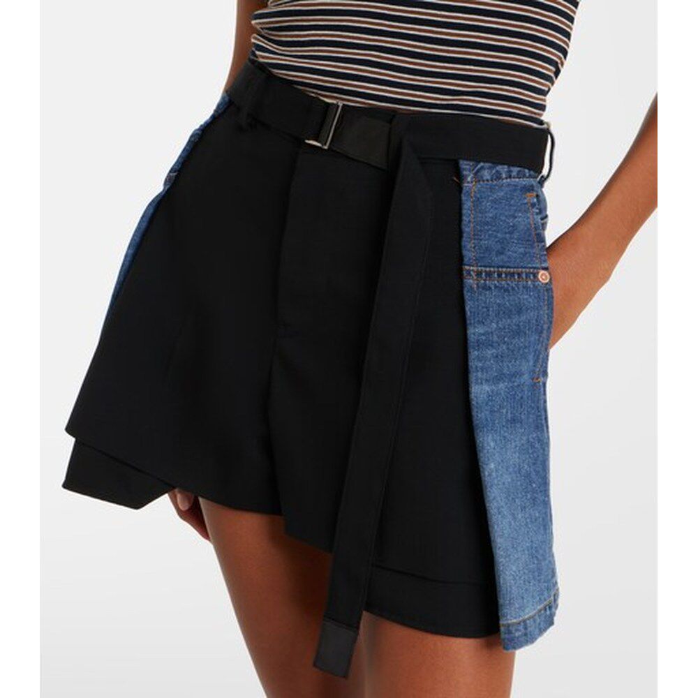 舒适时尚 香港直邮Sacai blue蓝色 拼接牛仔短裤 女士