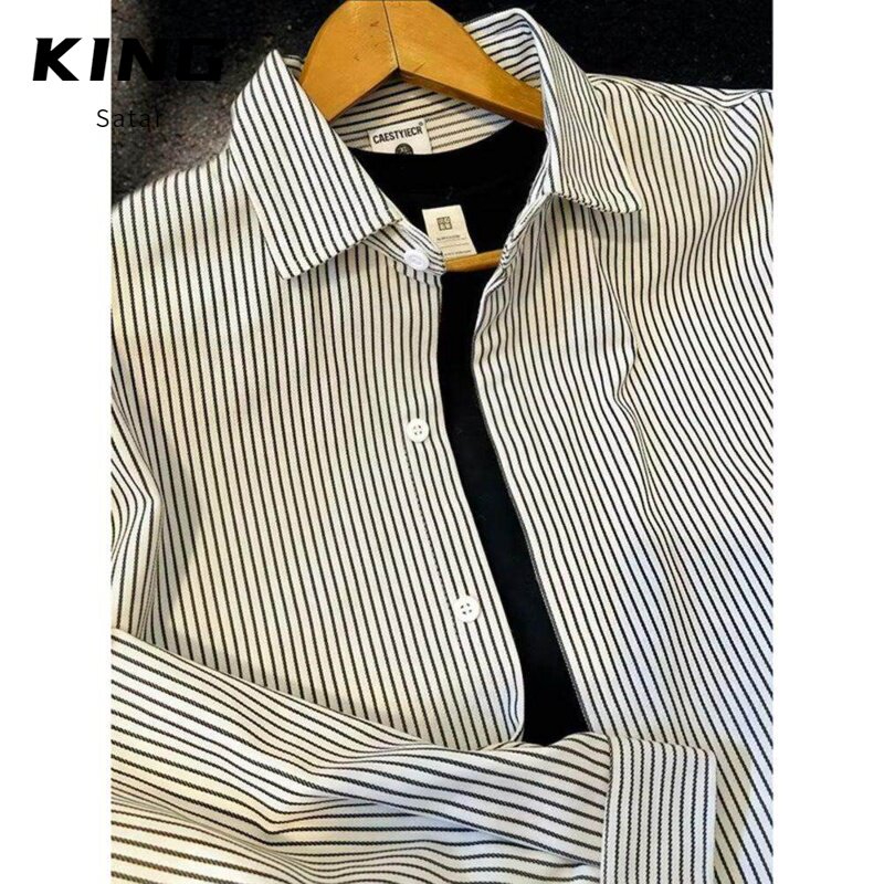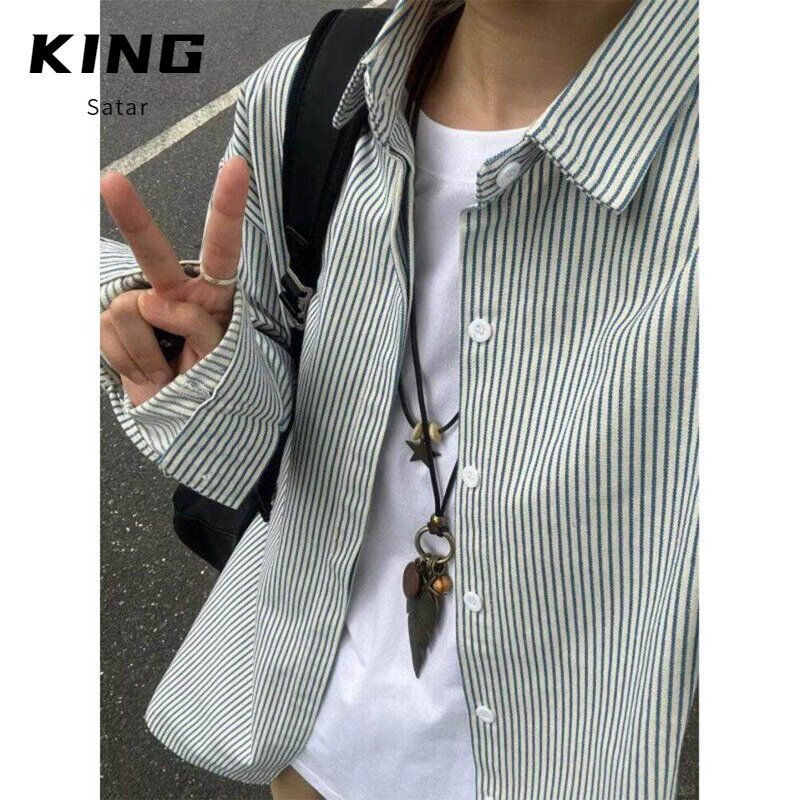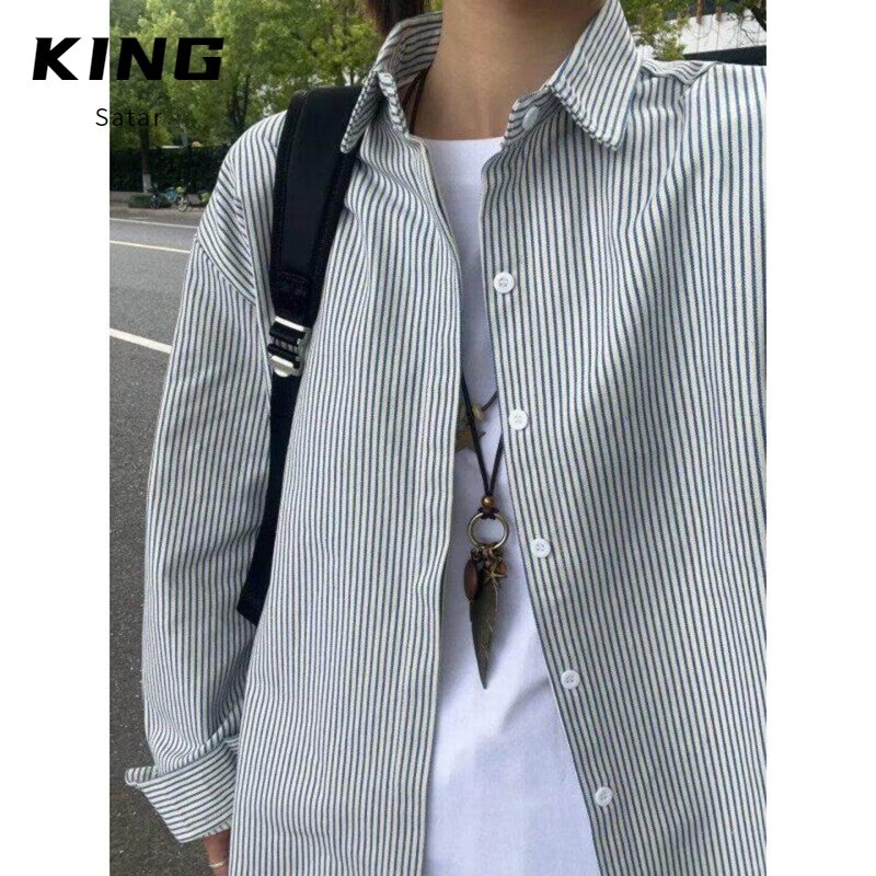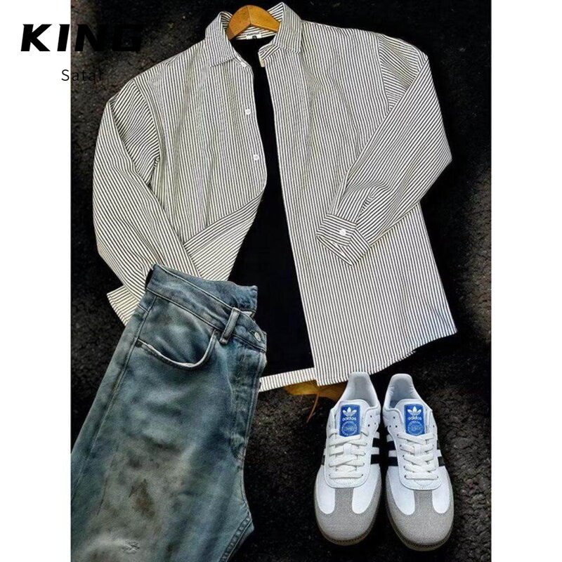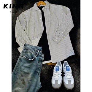 长袖 日系复古休闲男衬衫 条纹衬衫 春秋季 外套 情侣款 百搭基础款