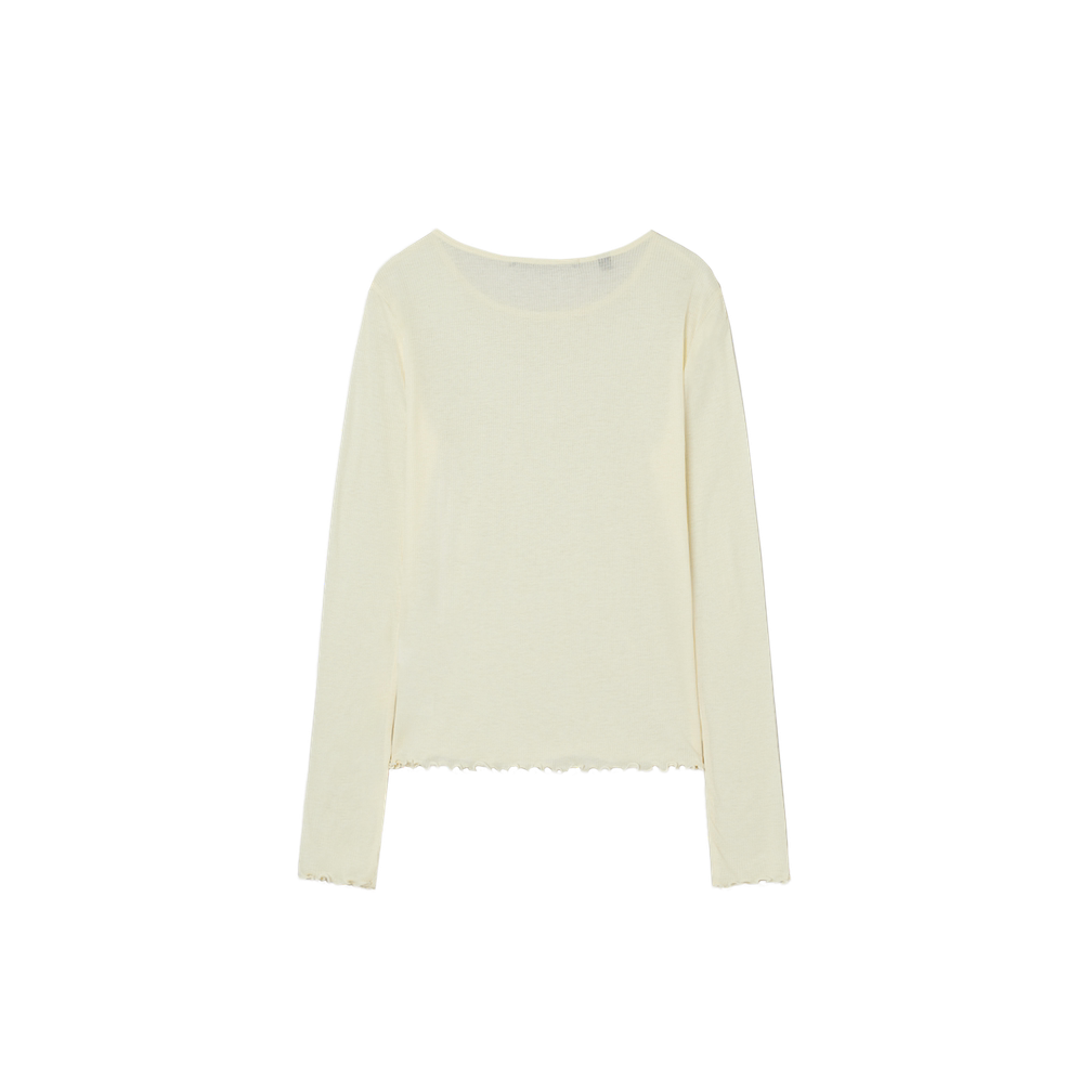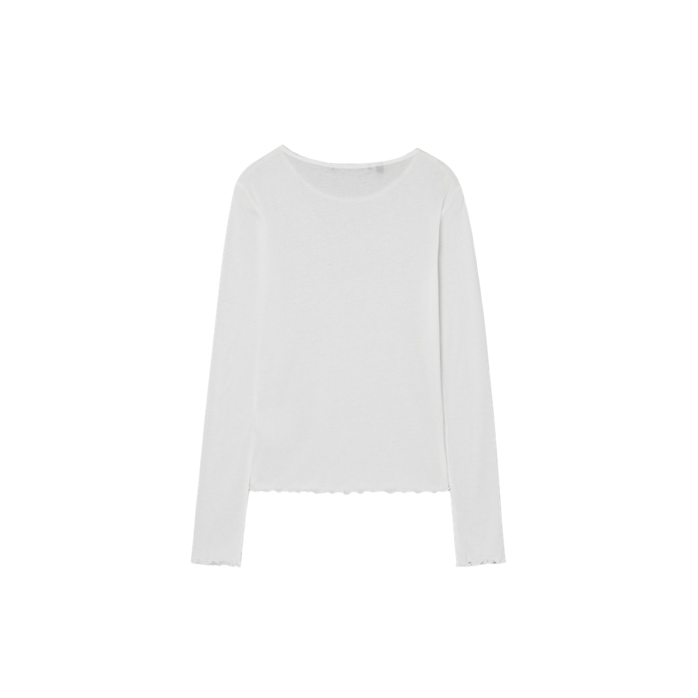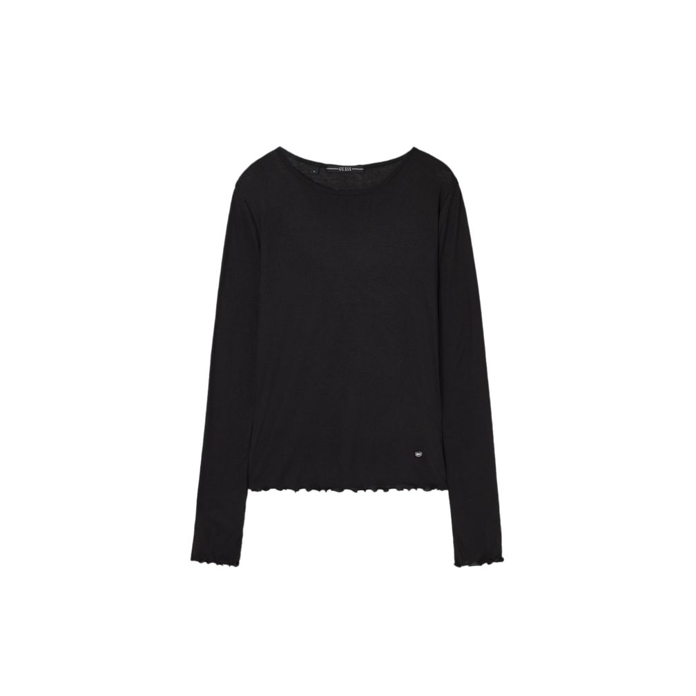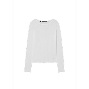 韩国代购 毛细肋纹天丝透光T恤OQ1K5443 GUESS女圆领简约长袖