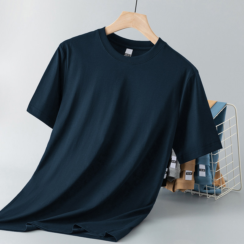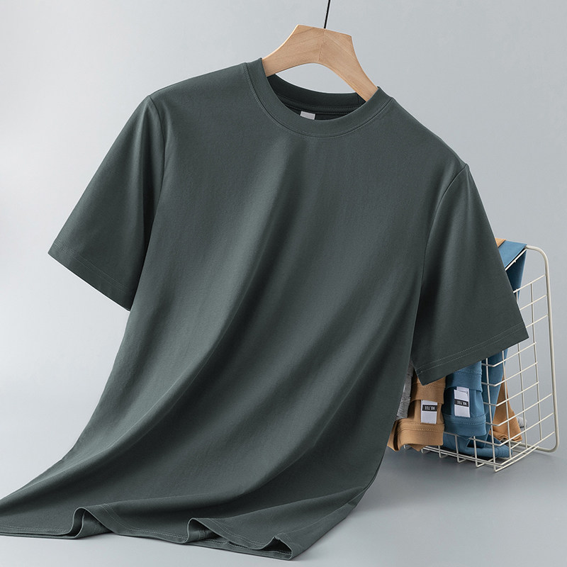 打底衫 潮流半袖 体恤 t恤男圆领纯色棉宽松韩版 200g重磅棉短袖