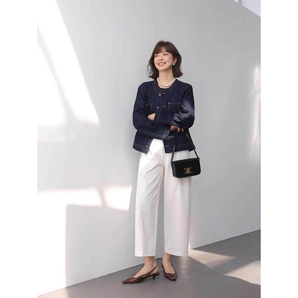 女春新款 EGG SLY高腰OL风通勤显瘦小个子阔腿九分休闲西裤
