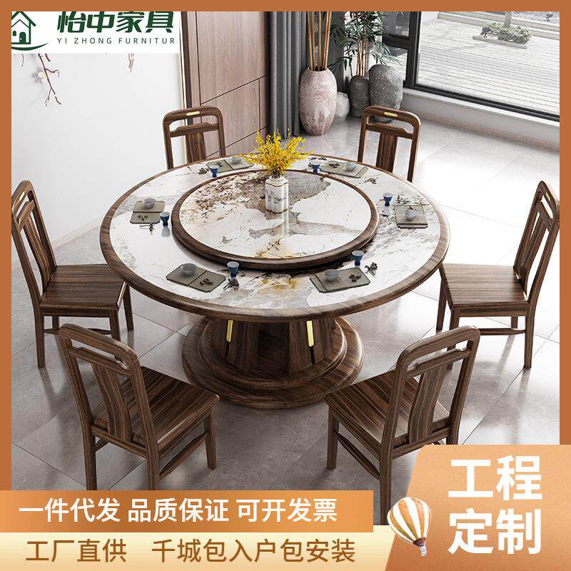 实木微晶石餐桌轻奢高端全屋搭配餐厅圆桌浅色系列轻奢餐桌椅组合