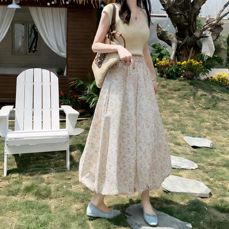 2026春夏新款 韩系少女感减龄百搭碎花半身裙氛围感气质A裙 花苞裙