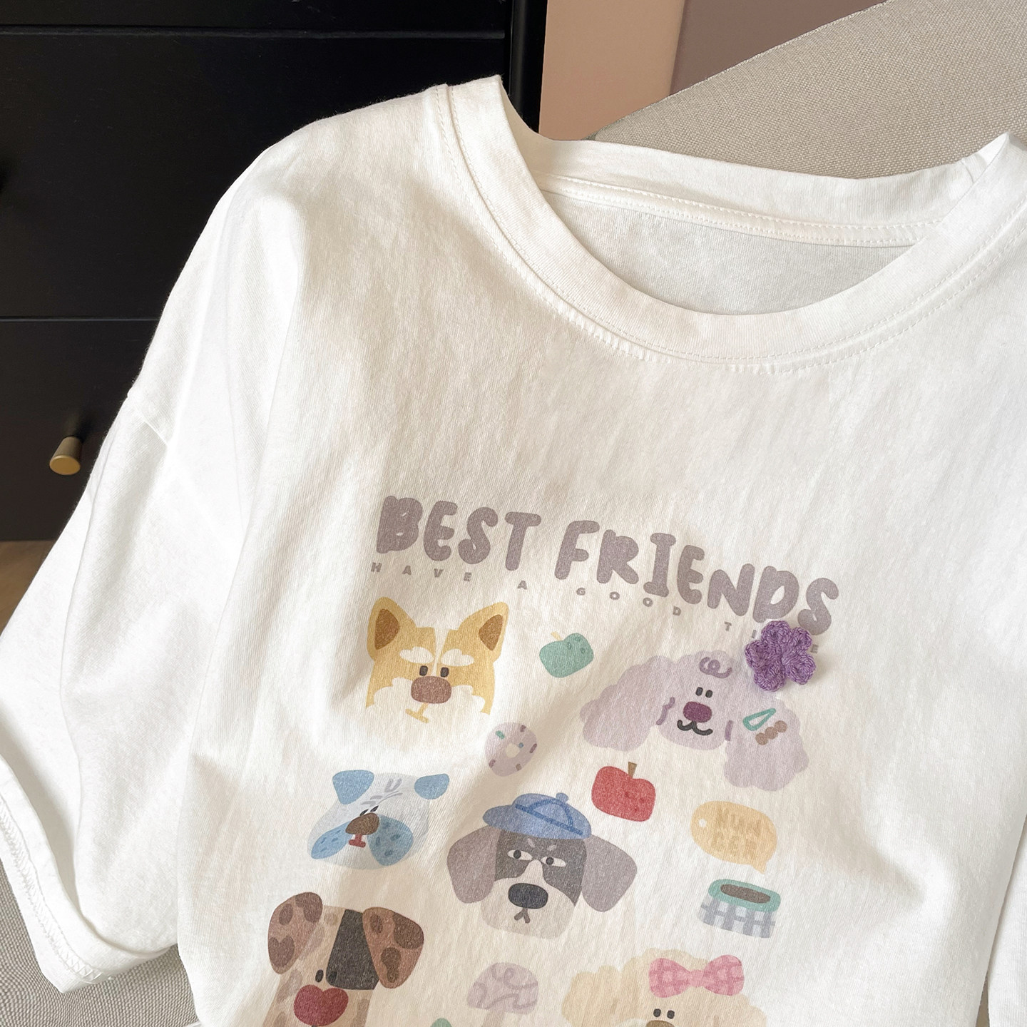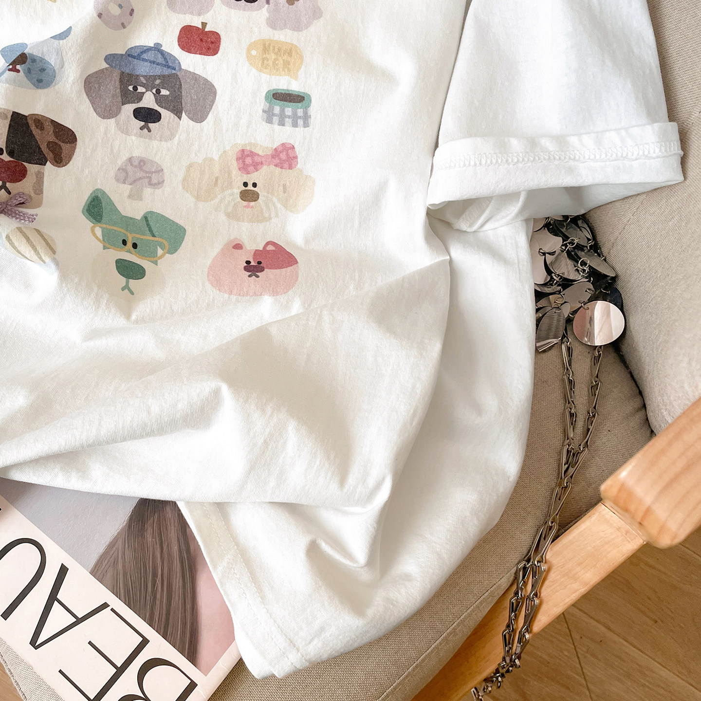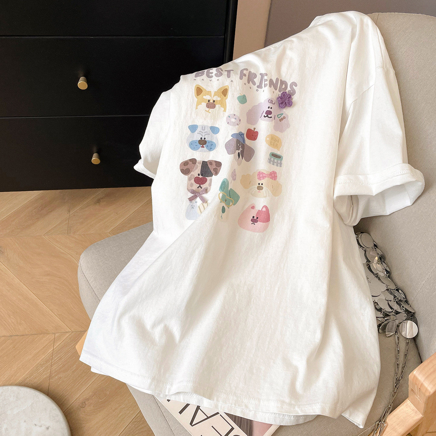 宽松中长款 夏大码 遮屁股上衣 T恤女2026新款 小C家减龄小狗印花短袖