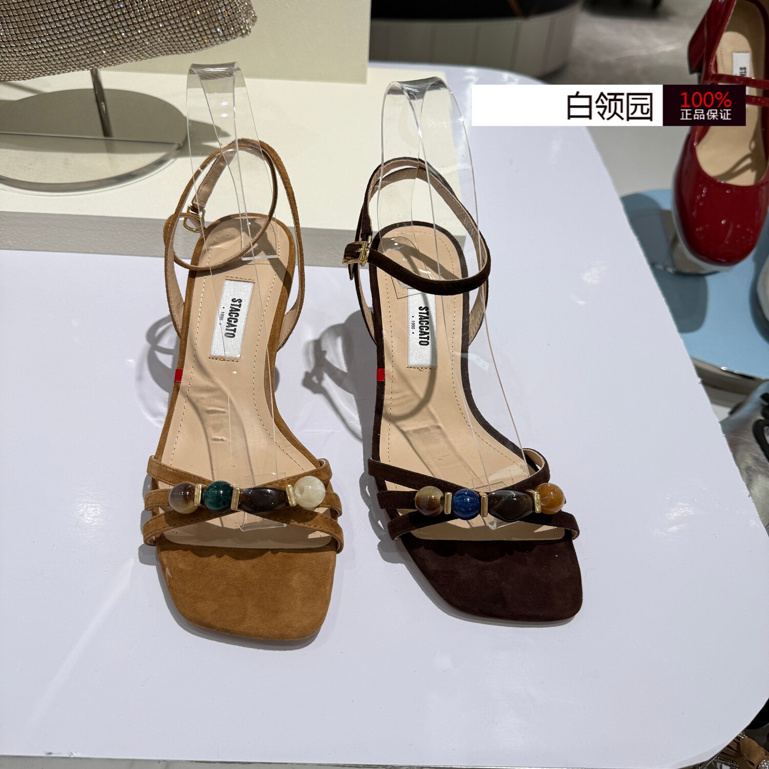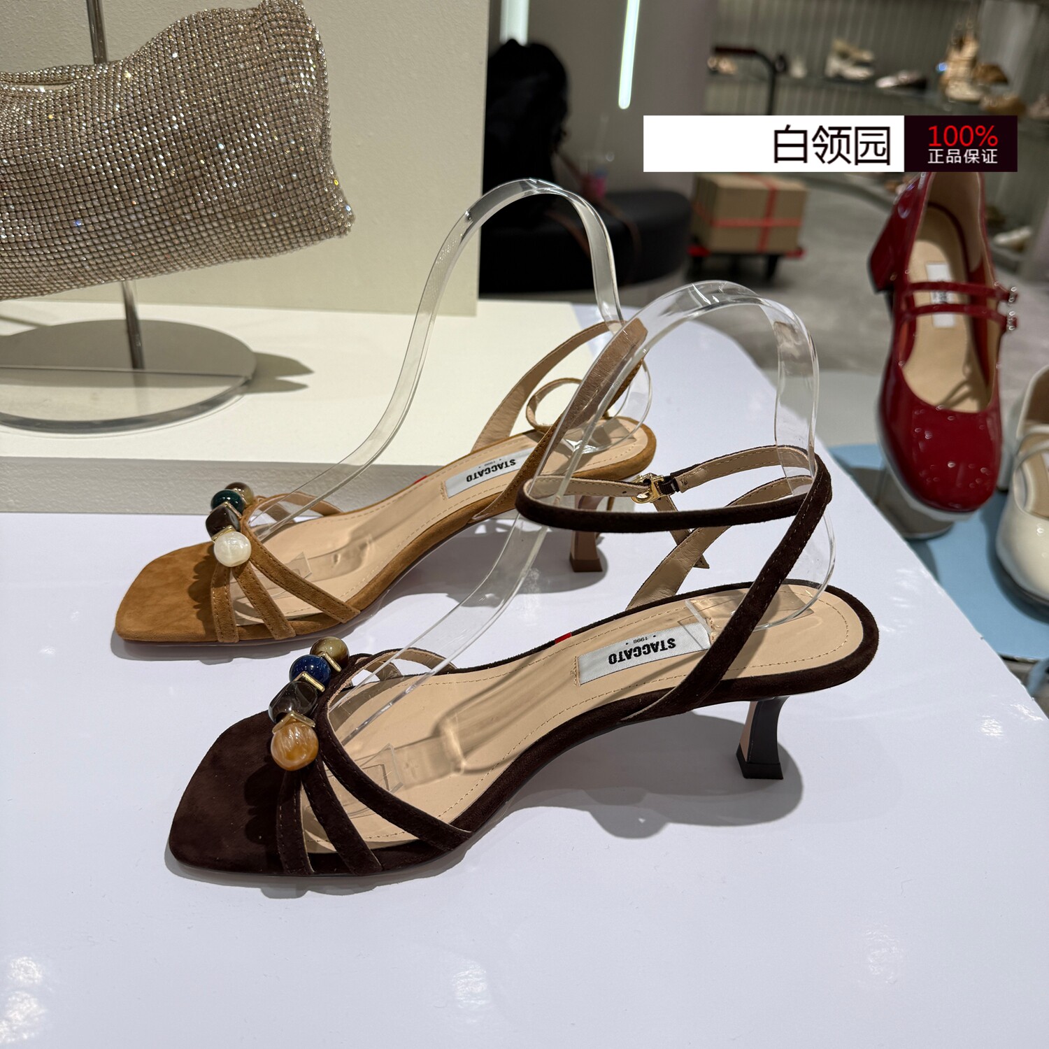 一字带高跟露趾凉鞋 Staccato思加图 时尚 2026法式 女ELU01 专柜正品