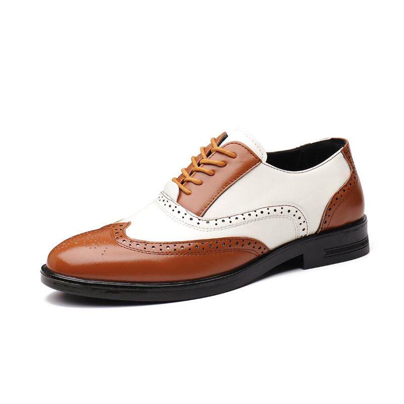 大码 男鞋 拼色正装 英伦布洛克雕花尖头商务男鞋 皮 新品 系带男式 夏季