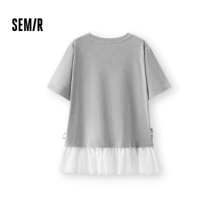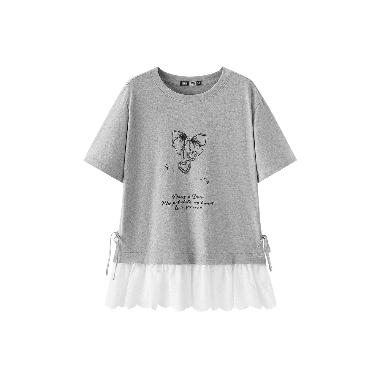 甜美甜酷套头衫 纯棉假两件花边蝴蝶结2026新款 T恤女夏季 森马短袖