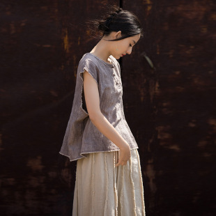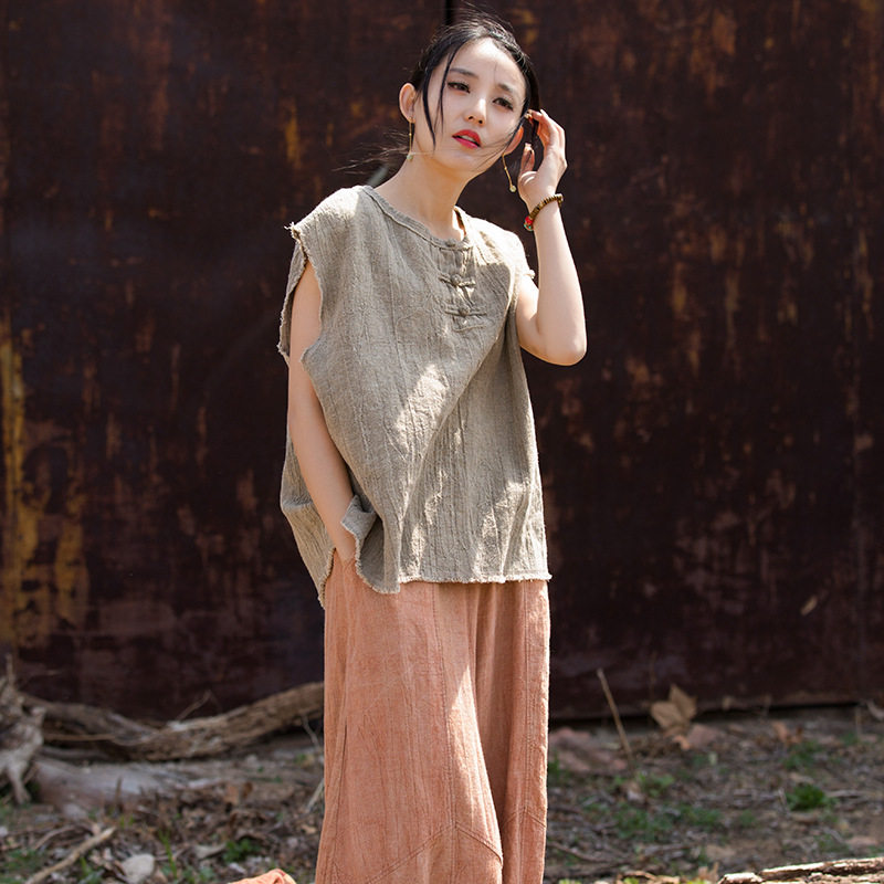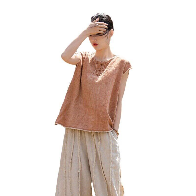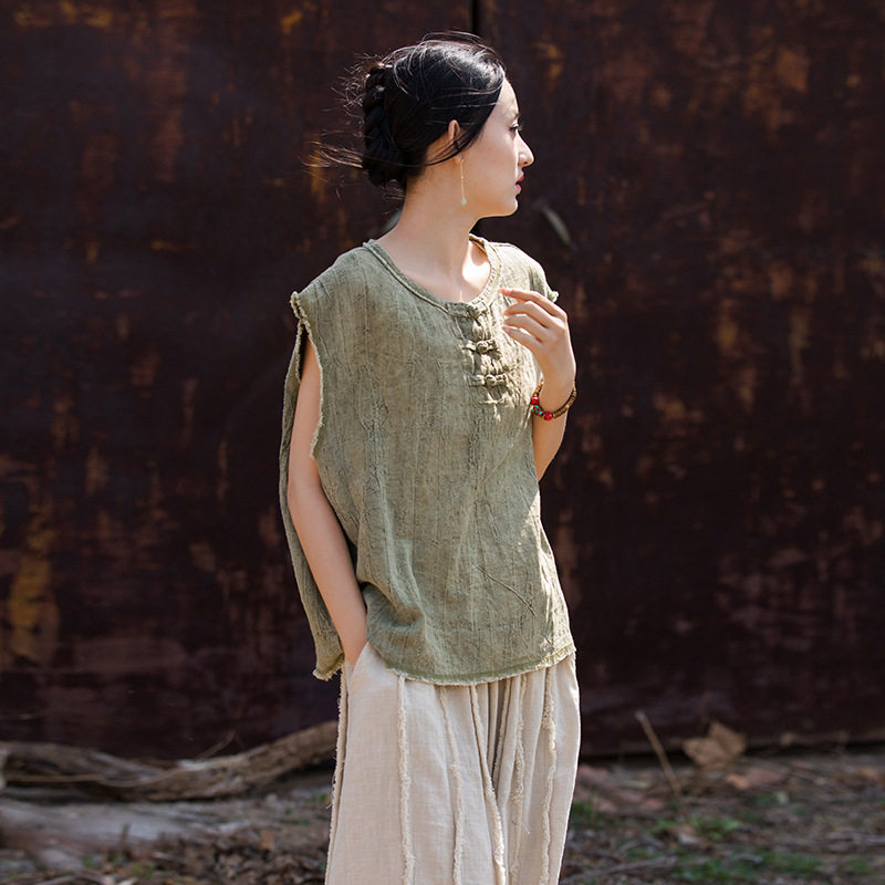 26春苎麻棉薄款 背心 扎染国风原创改良女盘扣马甲居家旅行百搭女式