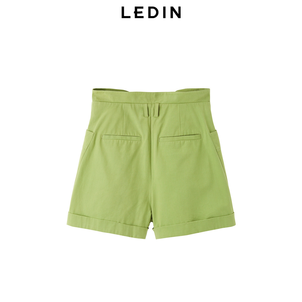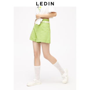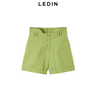 女夏绿色中短裤 乐町卷边高腰短裤 C2GCD2301 商场同款