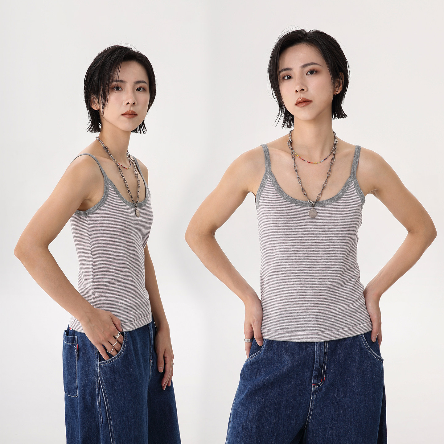 新品 白目自吊带背心女2026春季 原创百搭条纹内搭上衣潮 商场同款