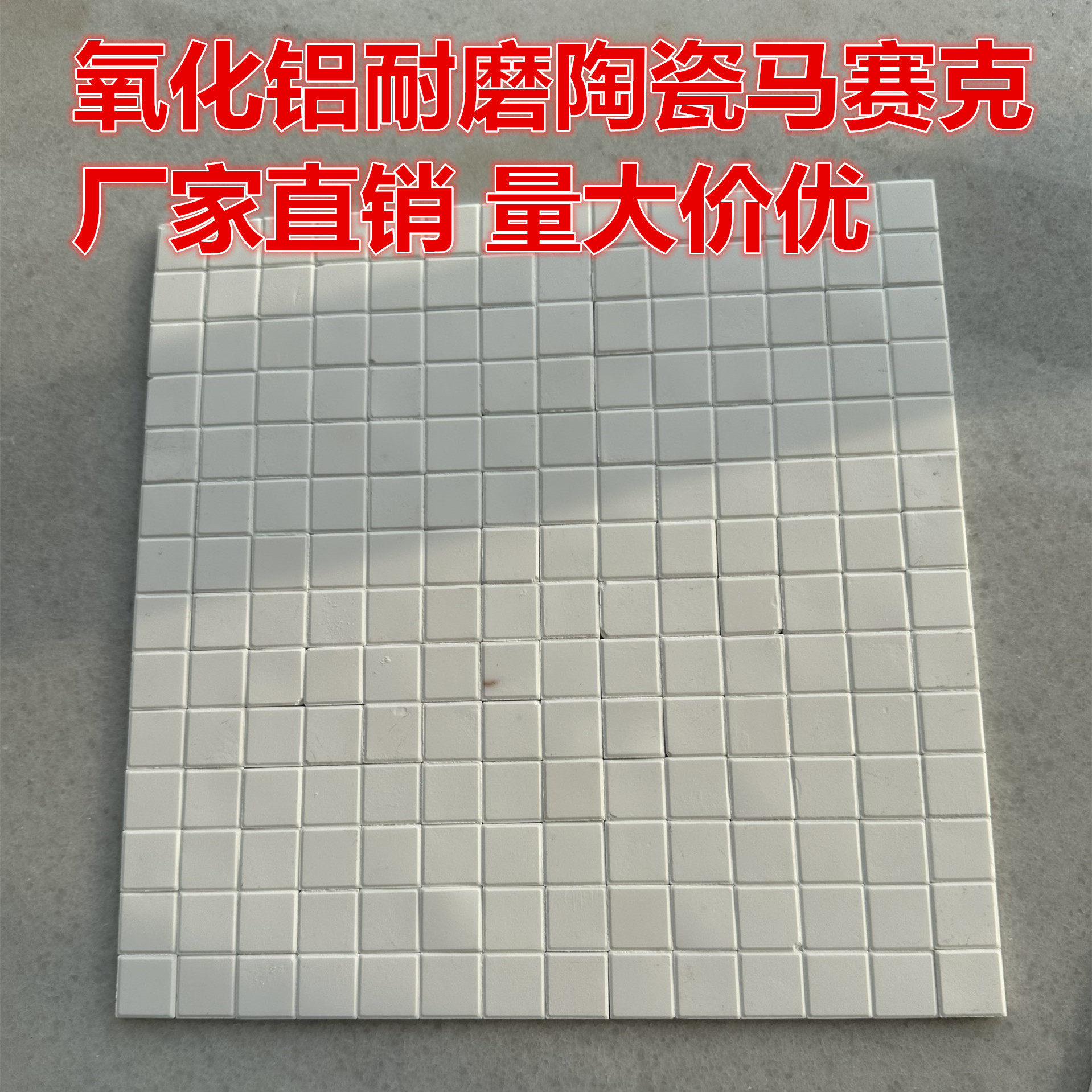耐磨氧化铝马赛克贴片17.5 17.5mm耐高温绝缘修复管道陶瓷衬板