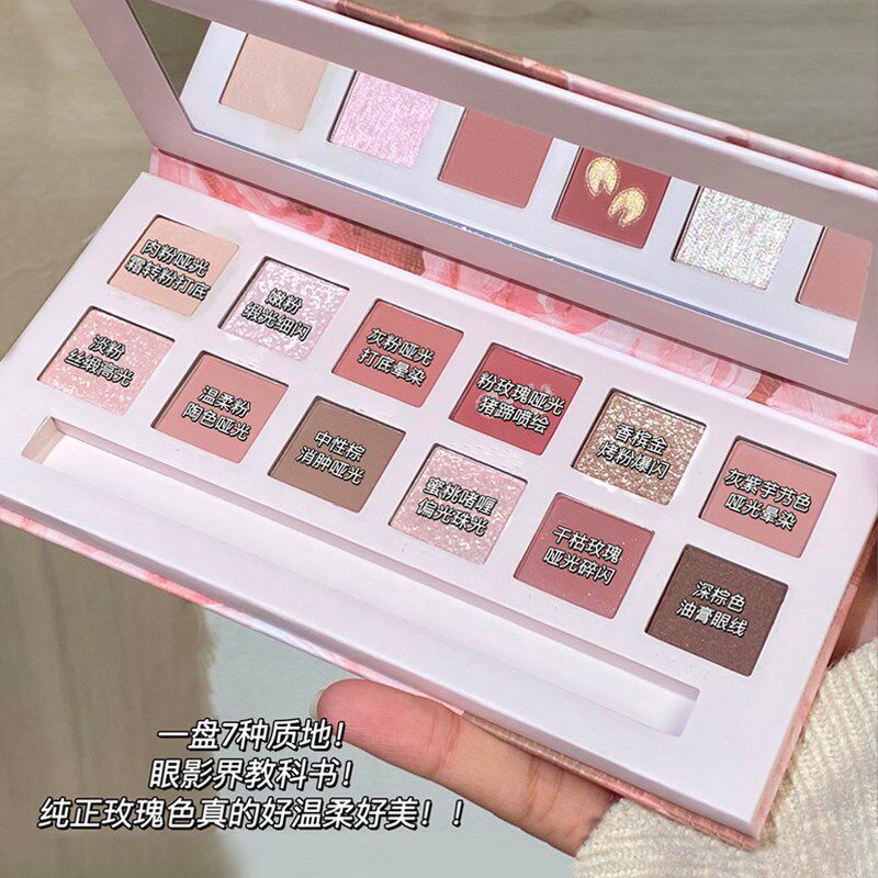 眼影盘日常c淡妆大地色干枯玫瑰腮红眼线亮晶晶高光修容综合盘美