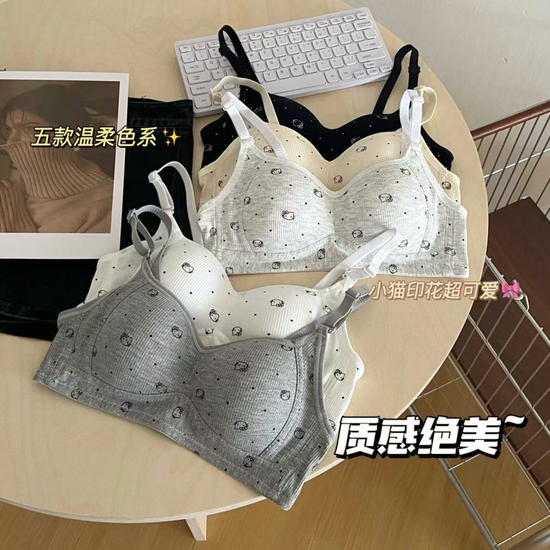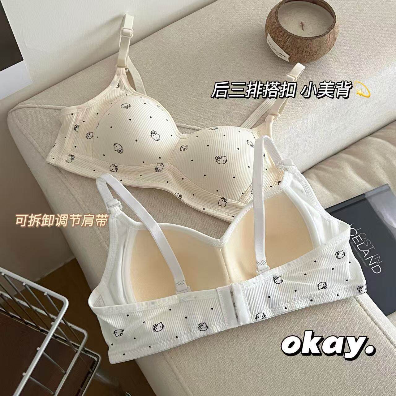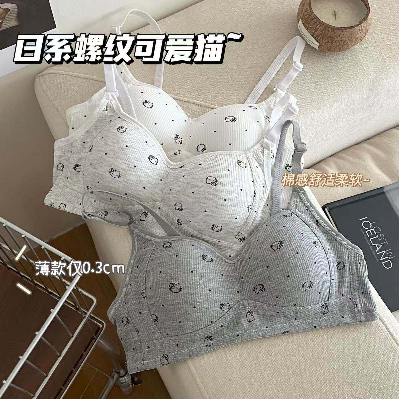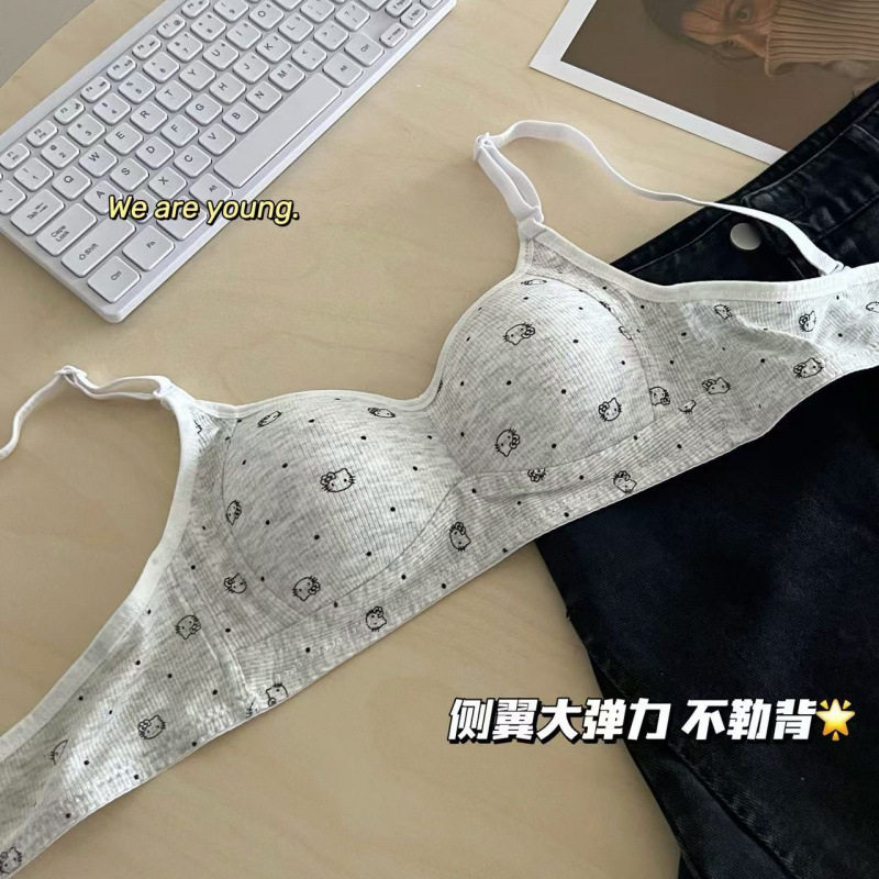 少女文胸薄款 印花内衣固定杯无钢圈聚拢文胸显大高中学生甜美舒适