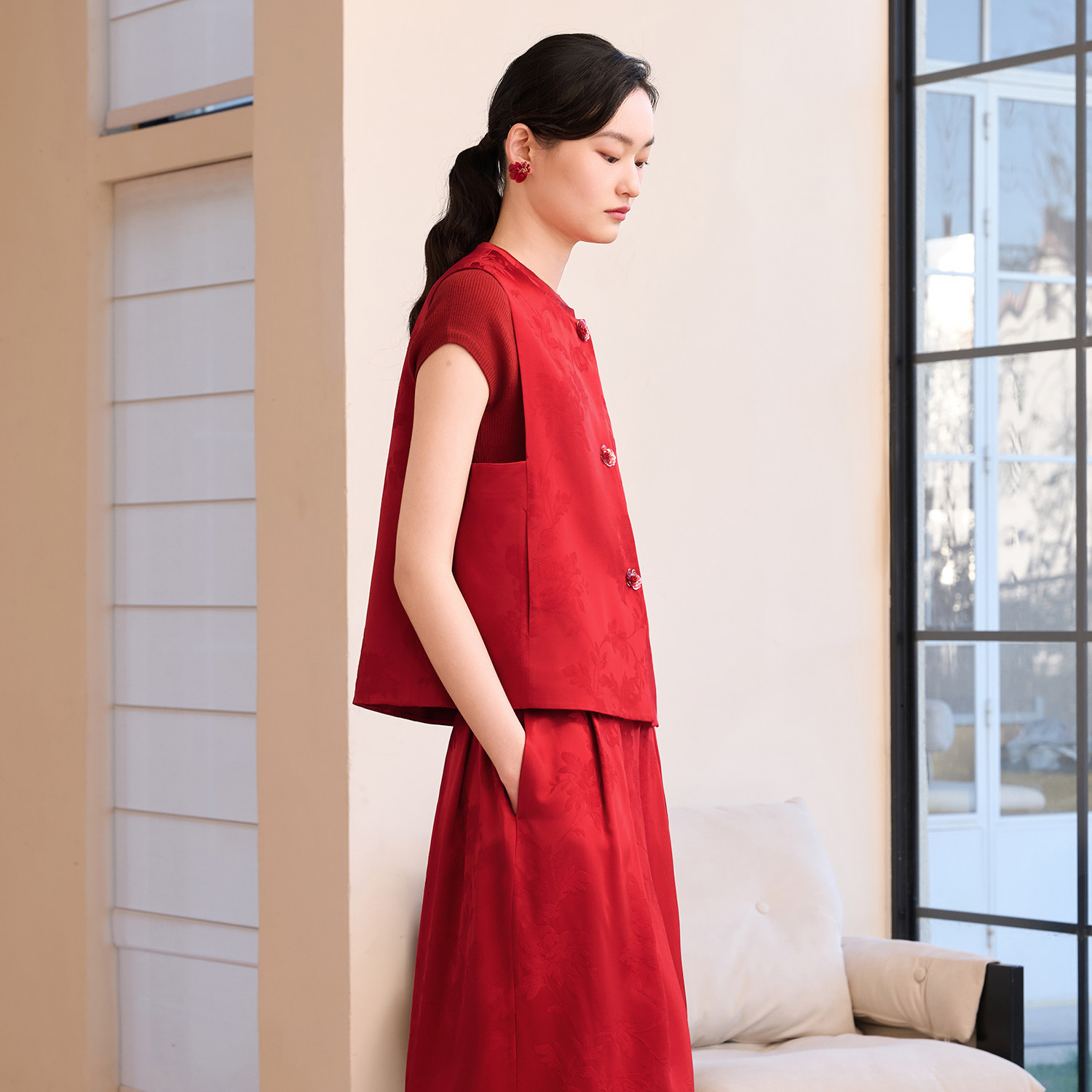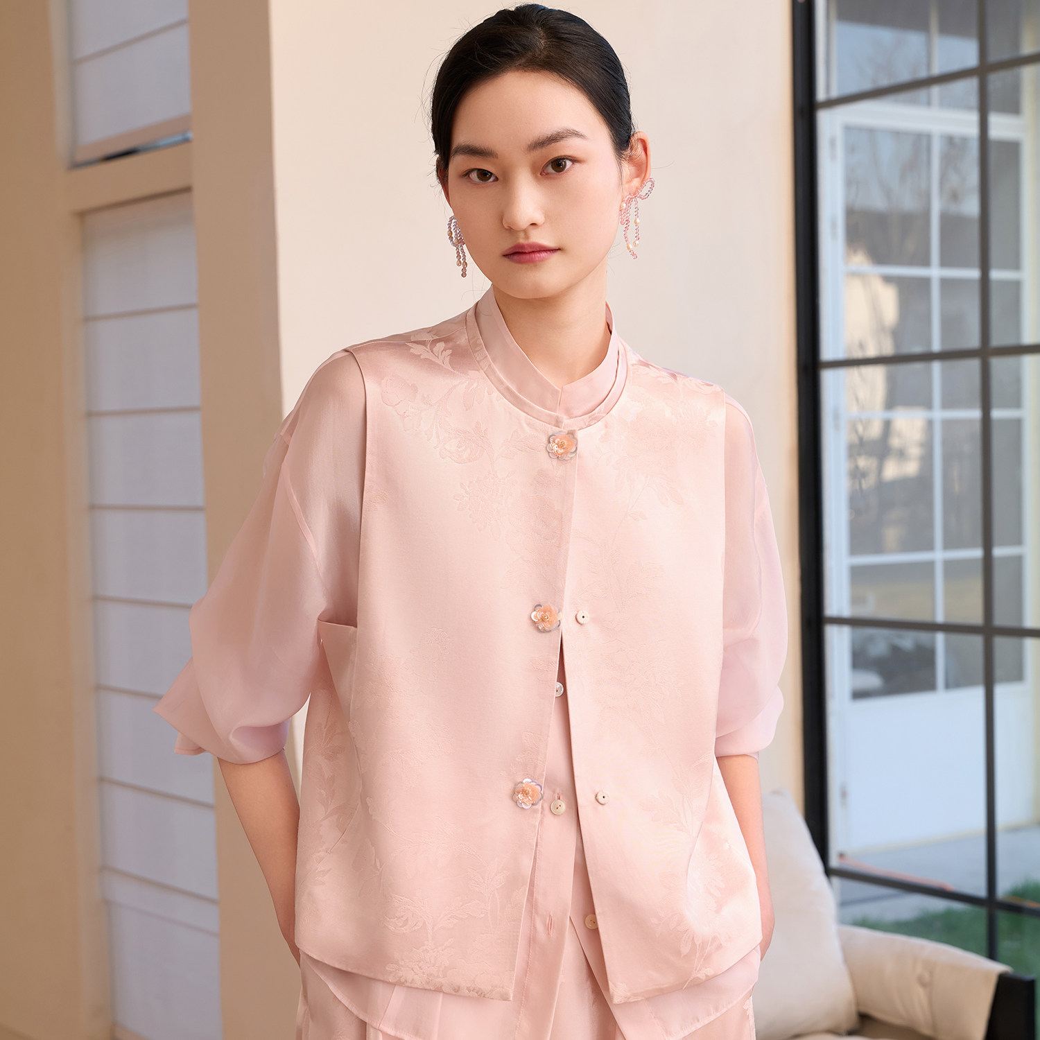 对襟缎面提花马甲背心女新中式 春款 国风坎肩上衣 以瑾 如意连云