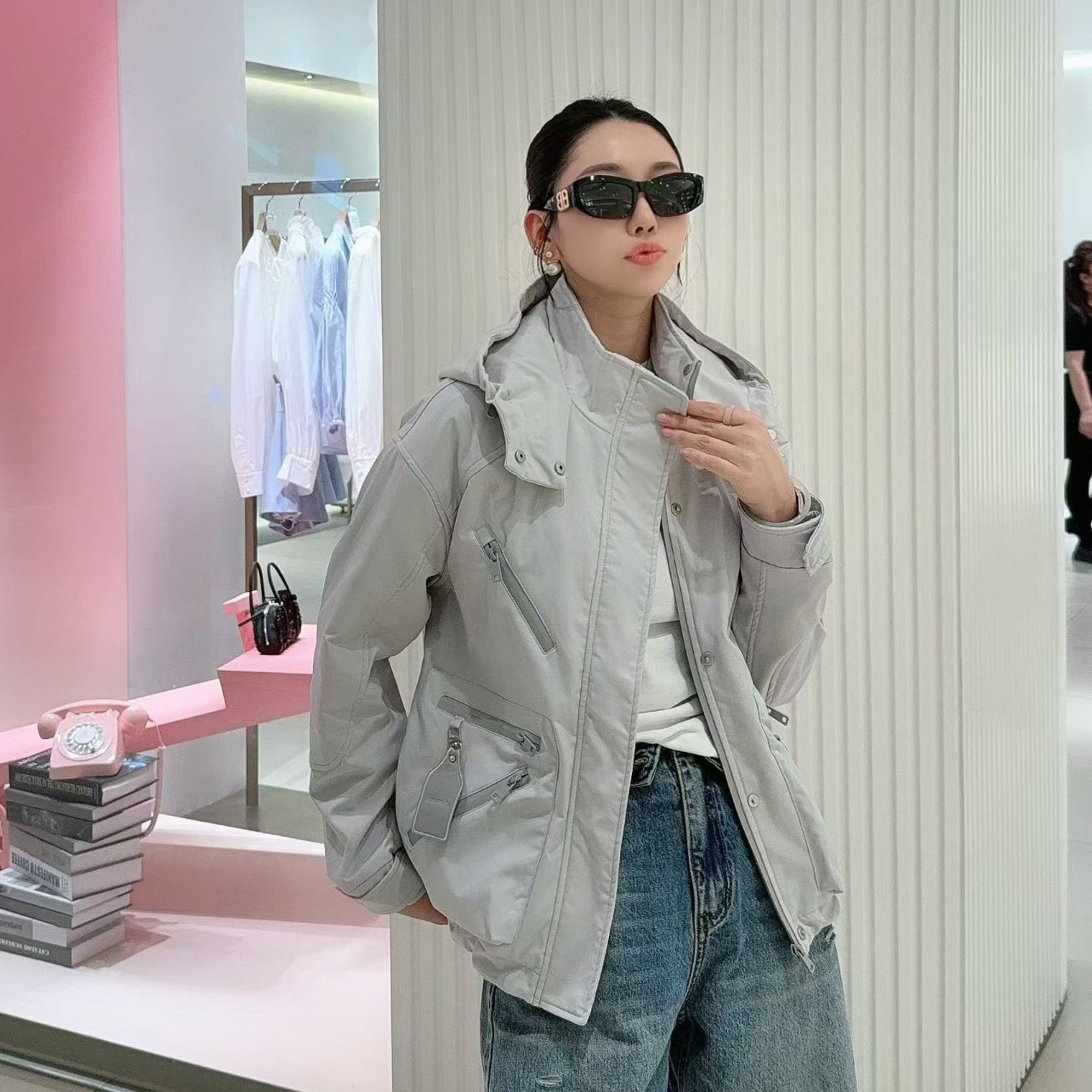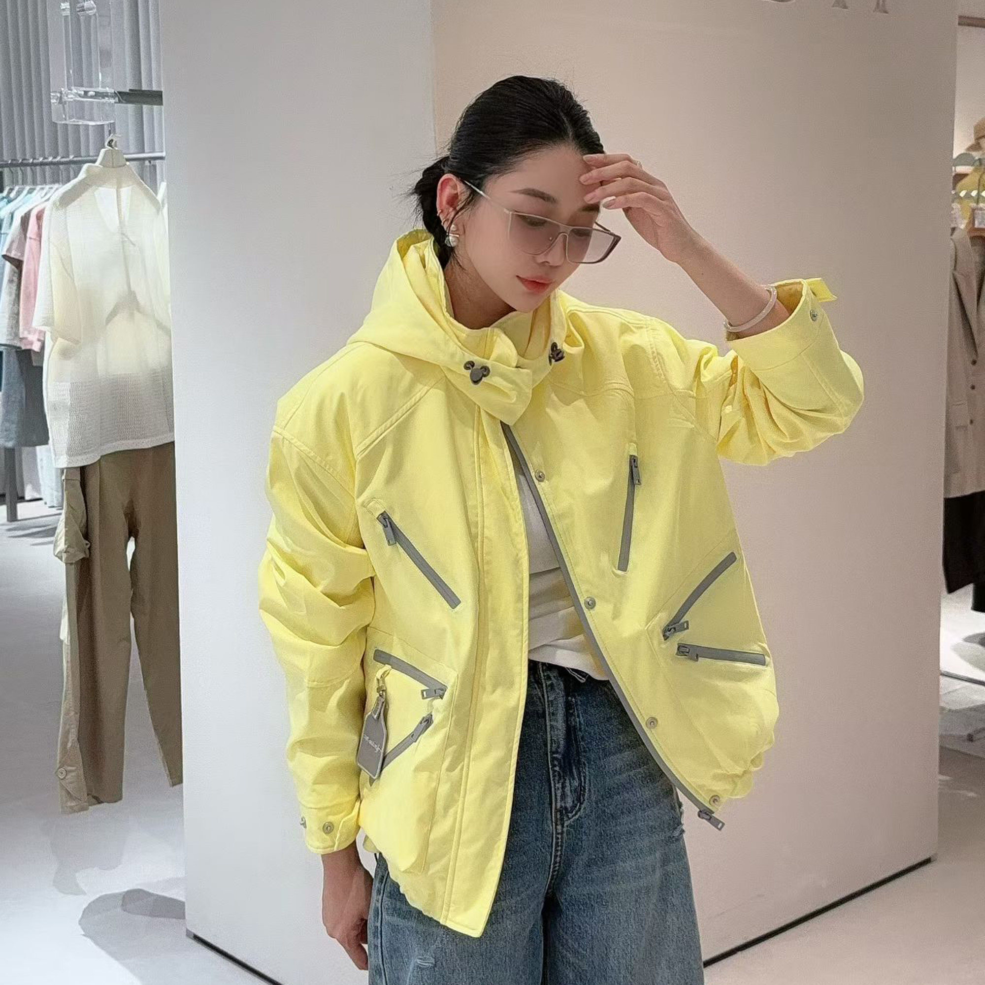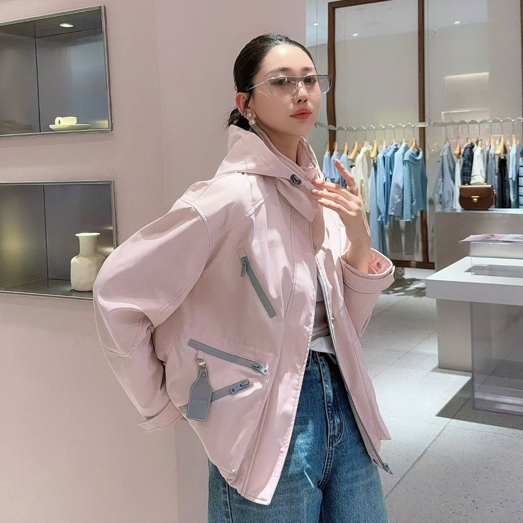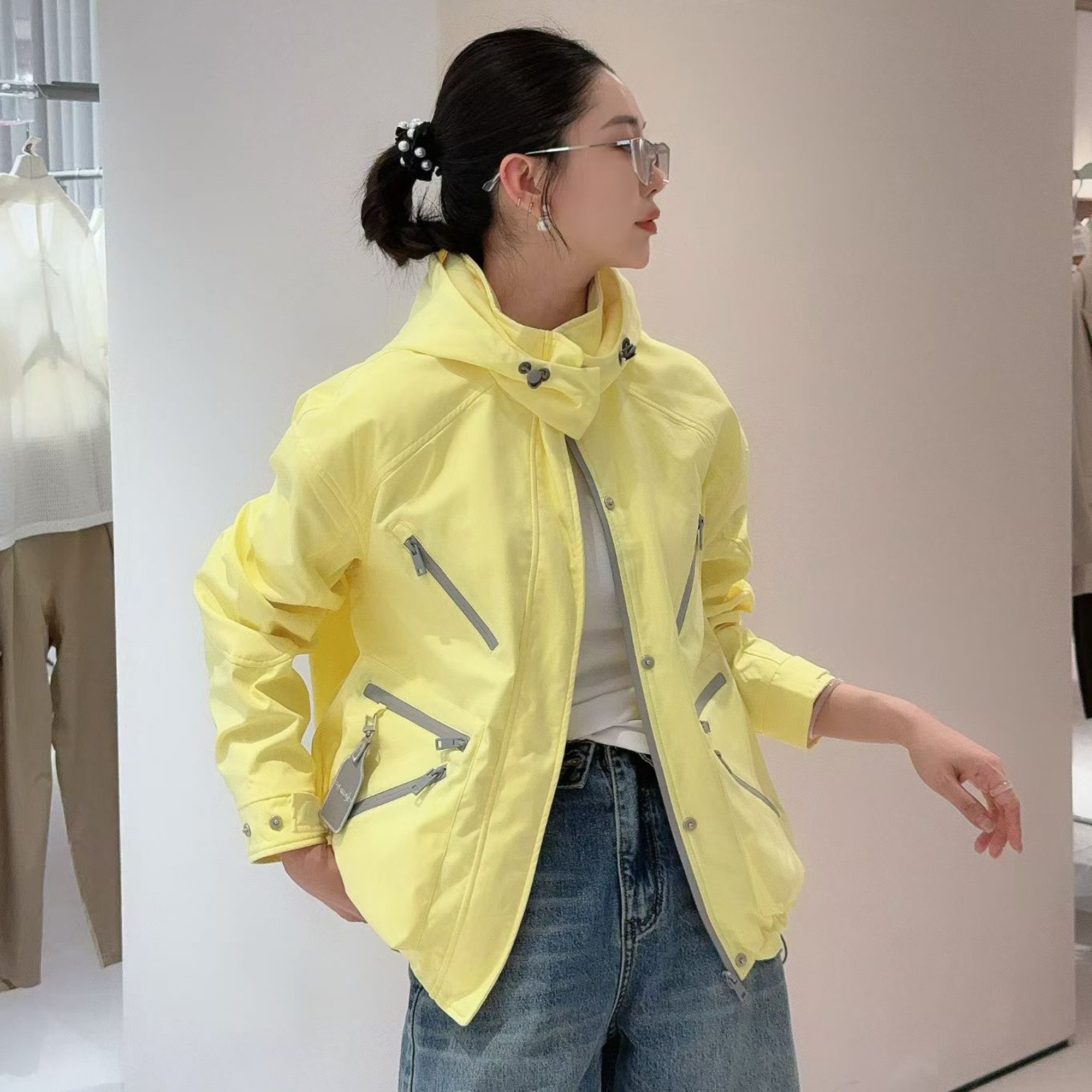 欧洲站2026春新款 休闲宽松连帽糖果色户外防风夹克外套女
