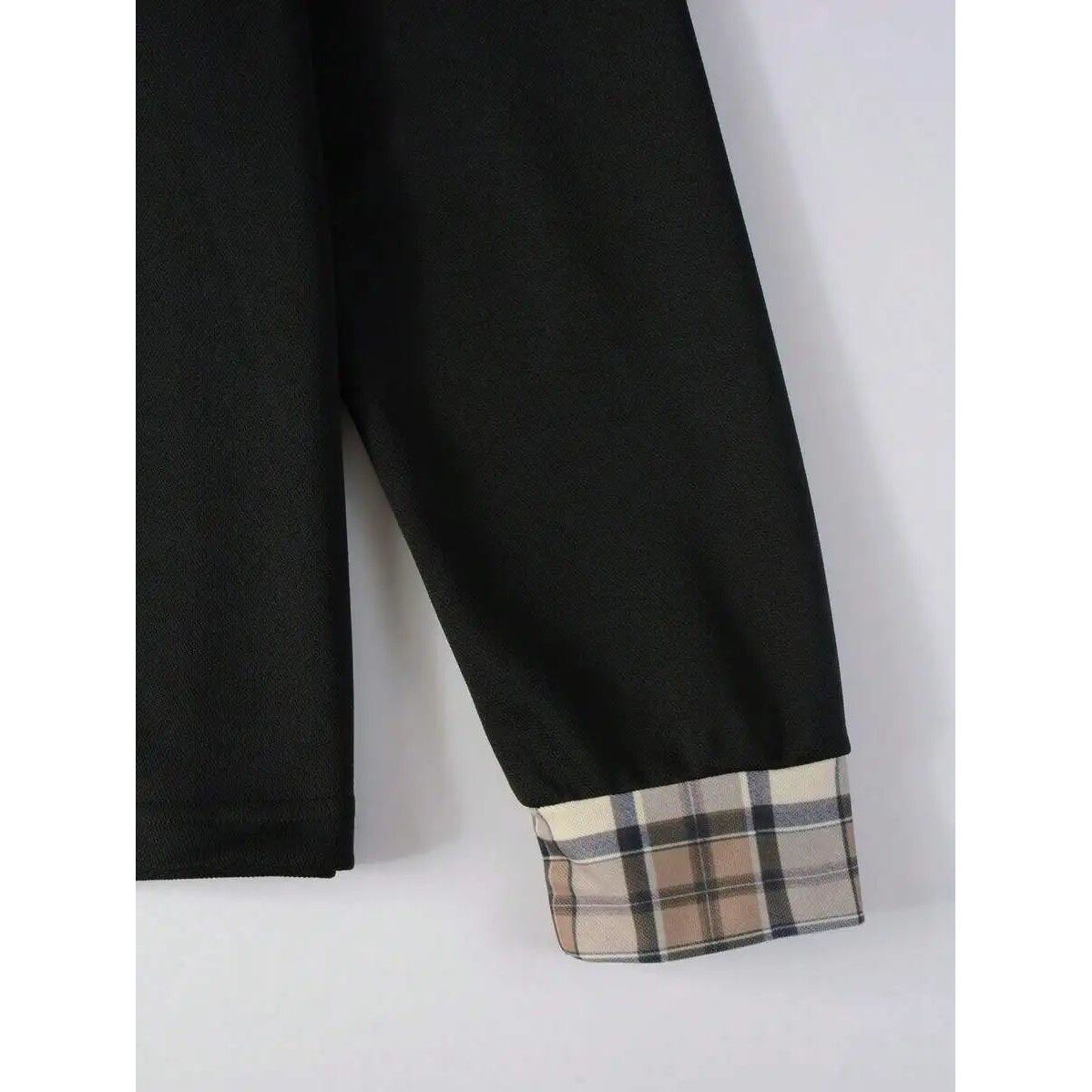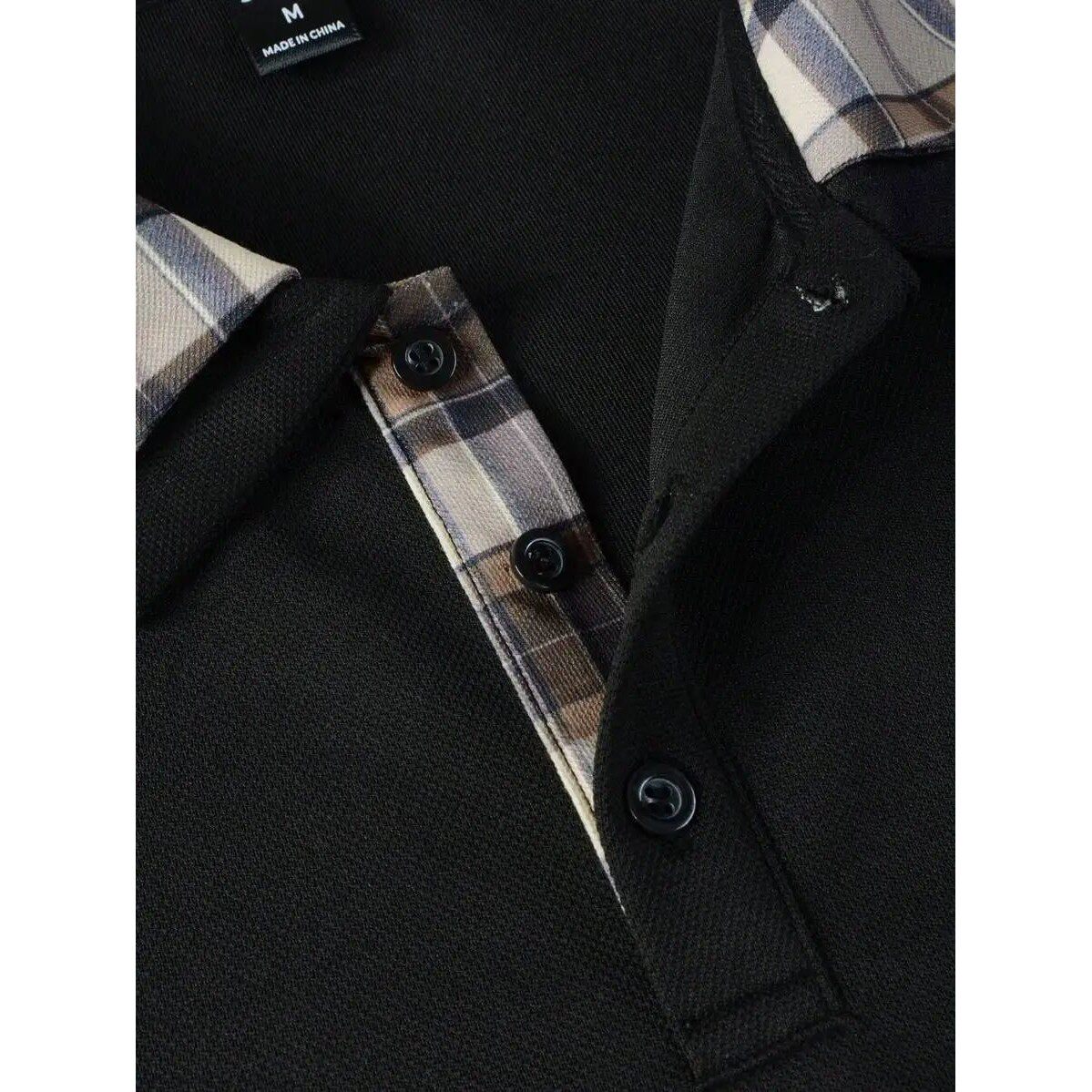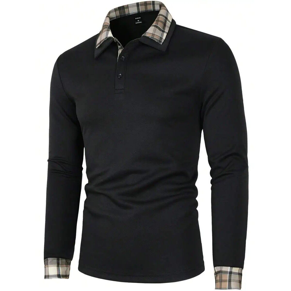 Collar Cuf Long Shirt with Polo Black Sleeve and Men Plaid