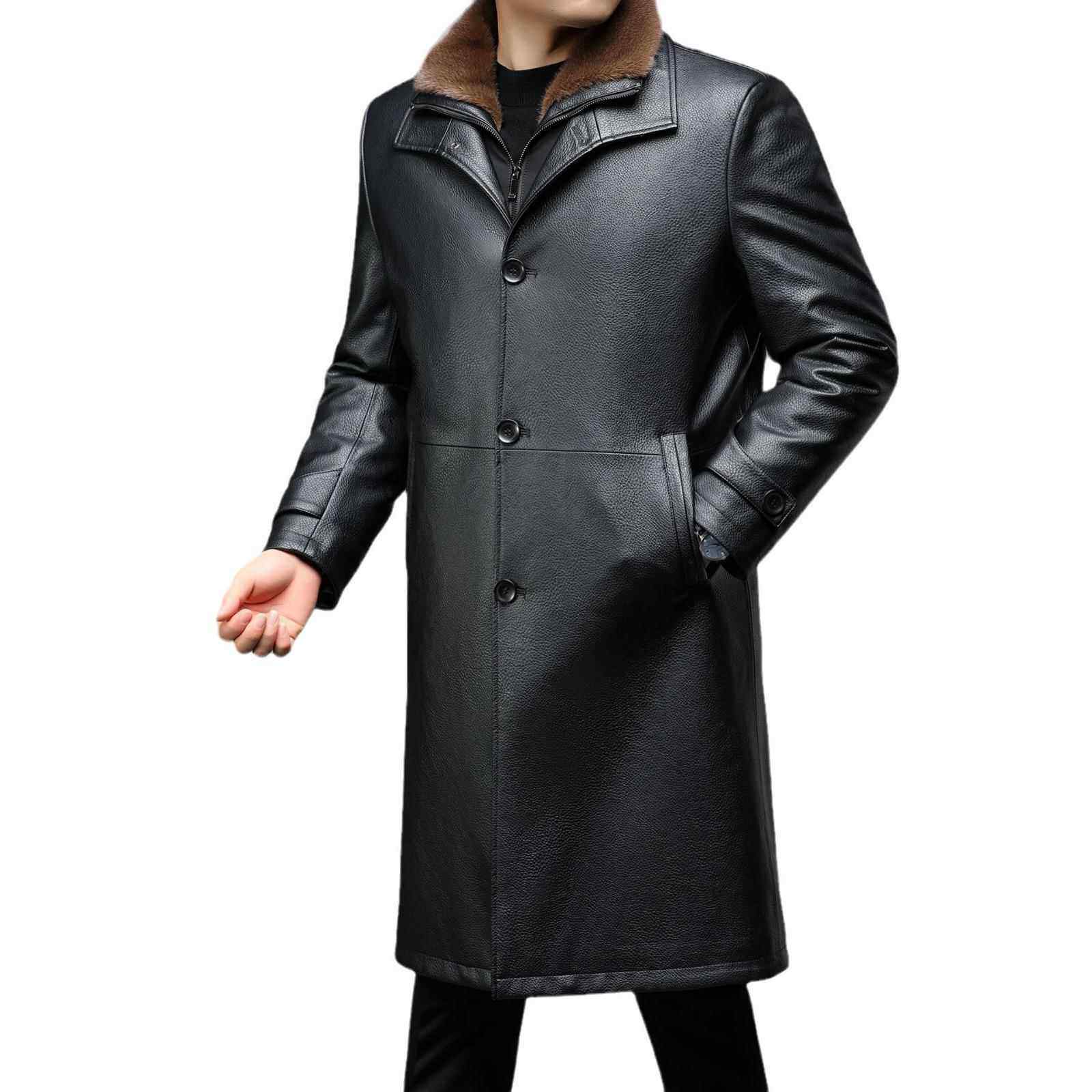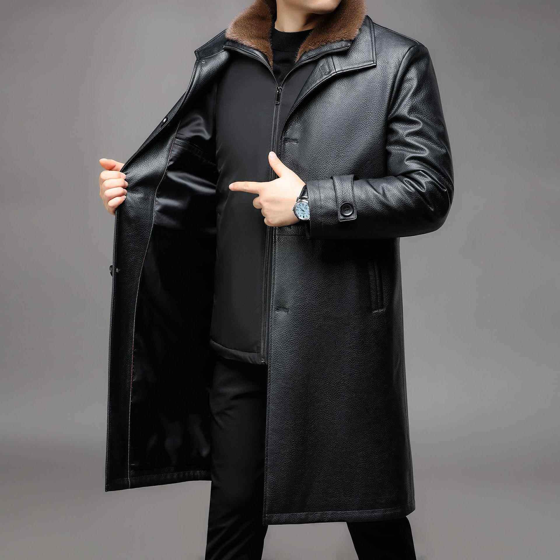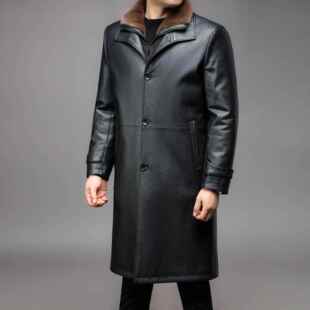 海宁皮9212 男皮毛一体真皮 BB衣绒加加厚中年士可脱卸内胆长男款