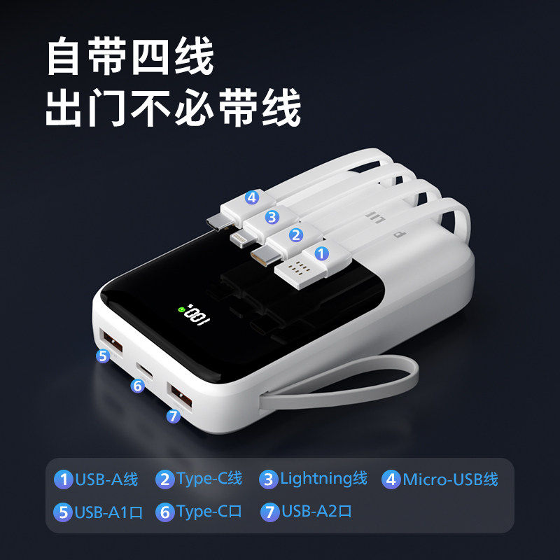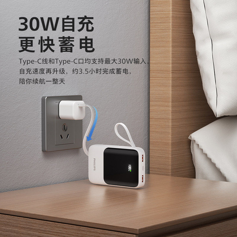 3c认证飞利浦充电宝35w快充大功率20000毫安大容量自带线移动电源
