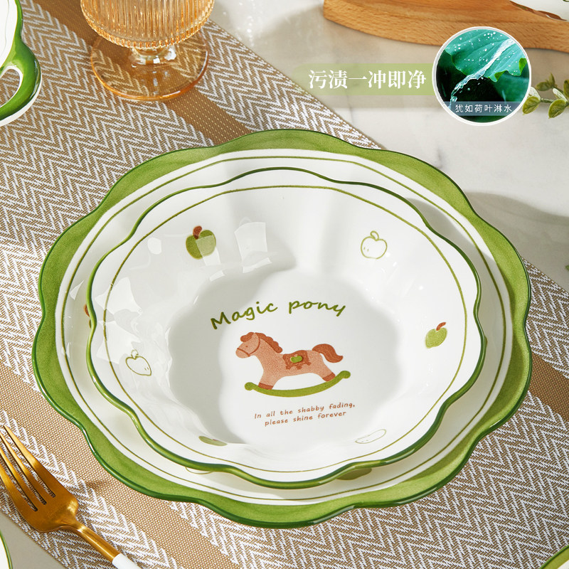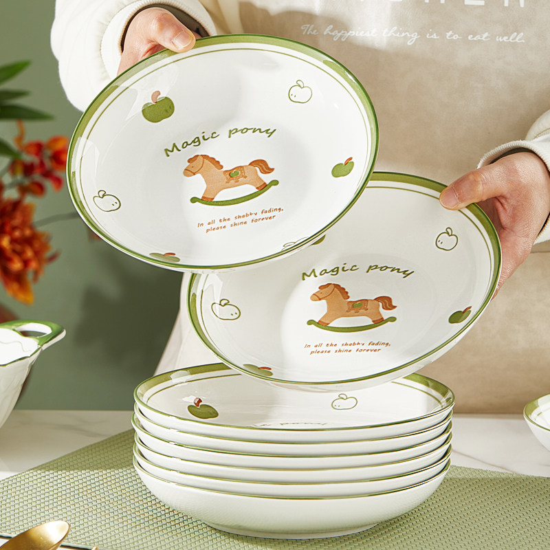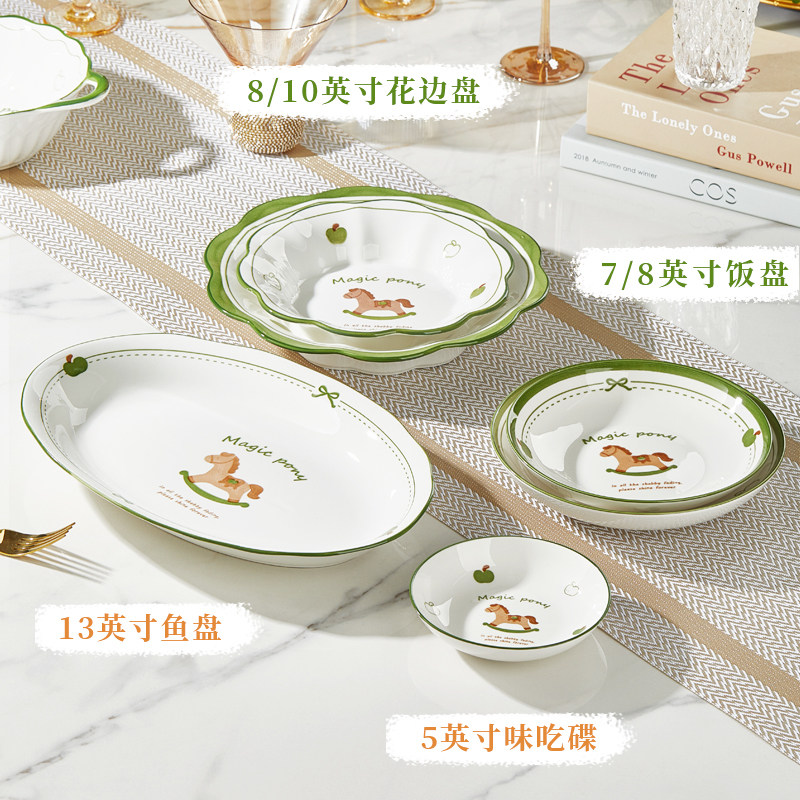 盘子菜盘家用陶瓷健康釉下彩餐具可微波加厚防烫圆形餐盘组合套装