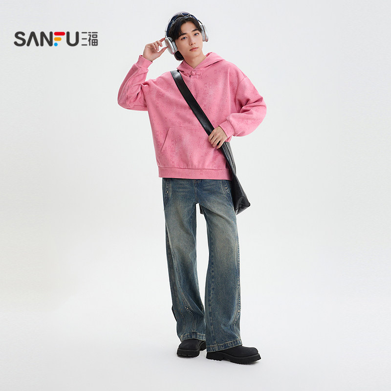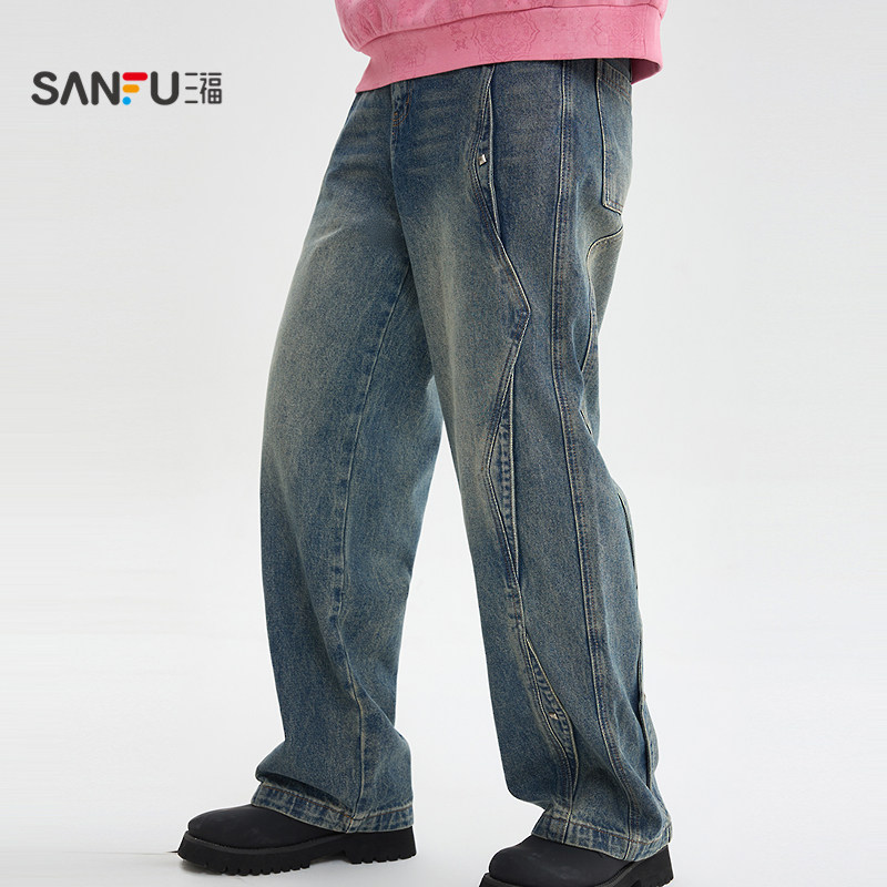 裤 三福2025冬季 街头潮酷直筒阔腿长裤 解构设计牛仔裤 子510091 男士