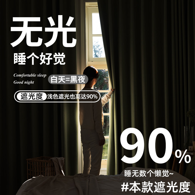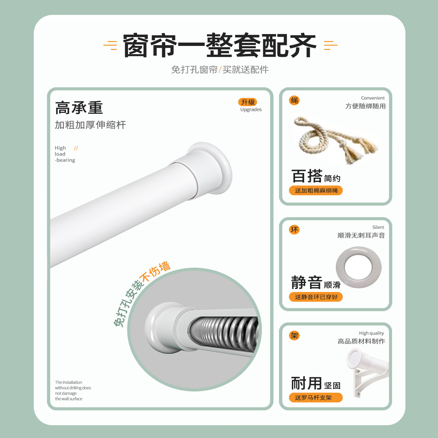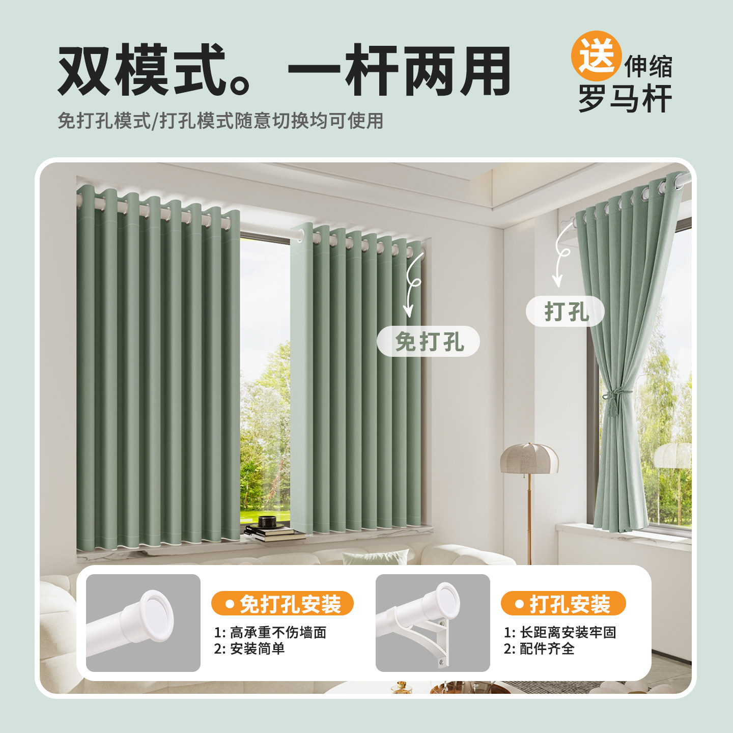 2025新款 卧室飘窗客厅遮阳专用伸缩杆一整套 全遮光窗帘免打孔安装