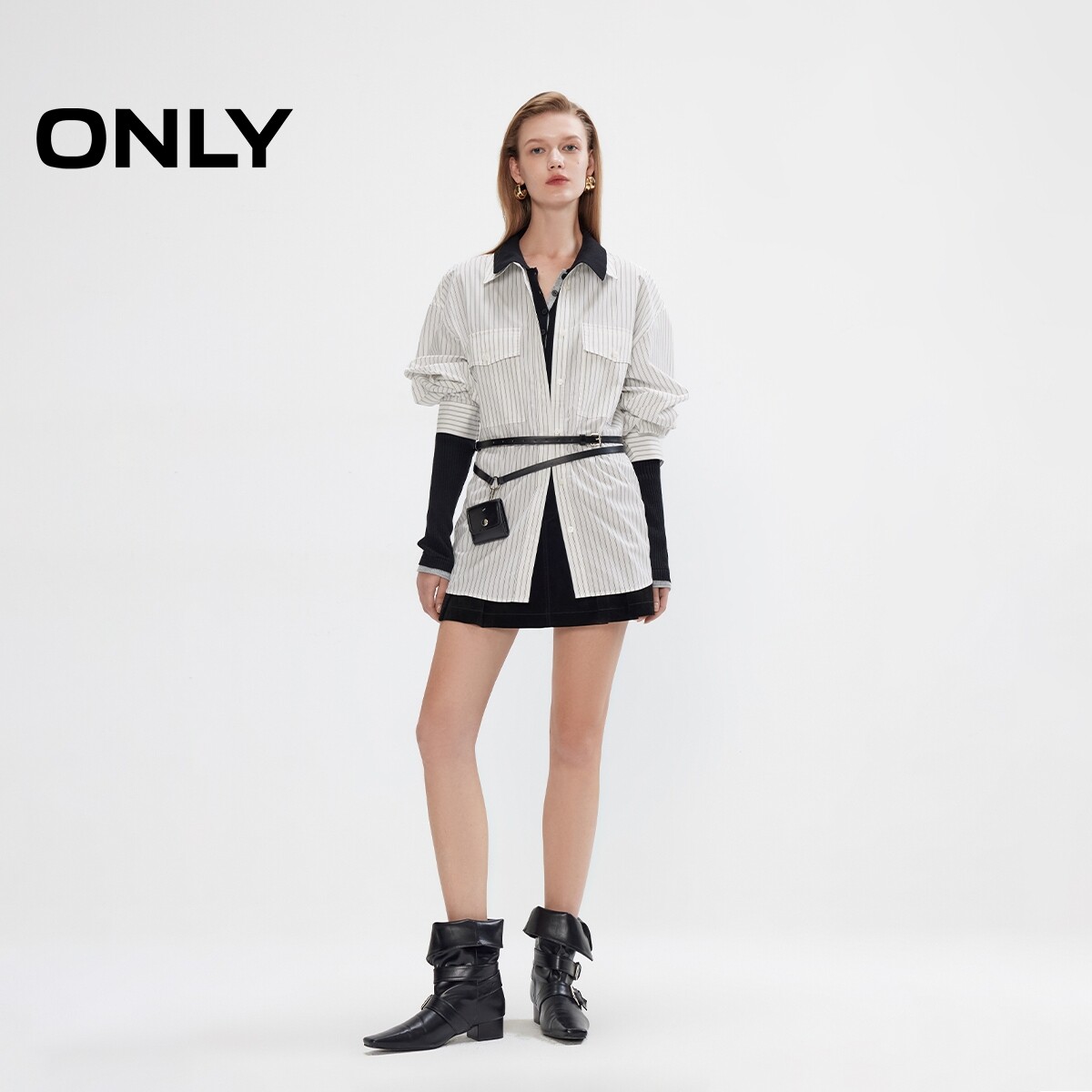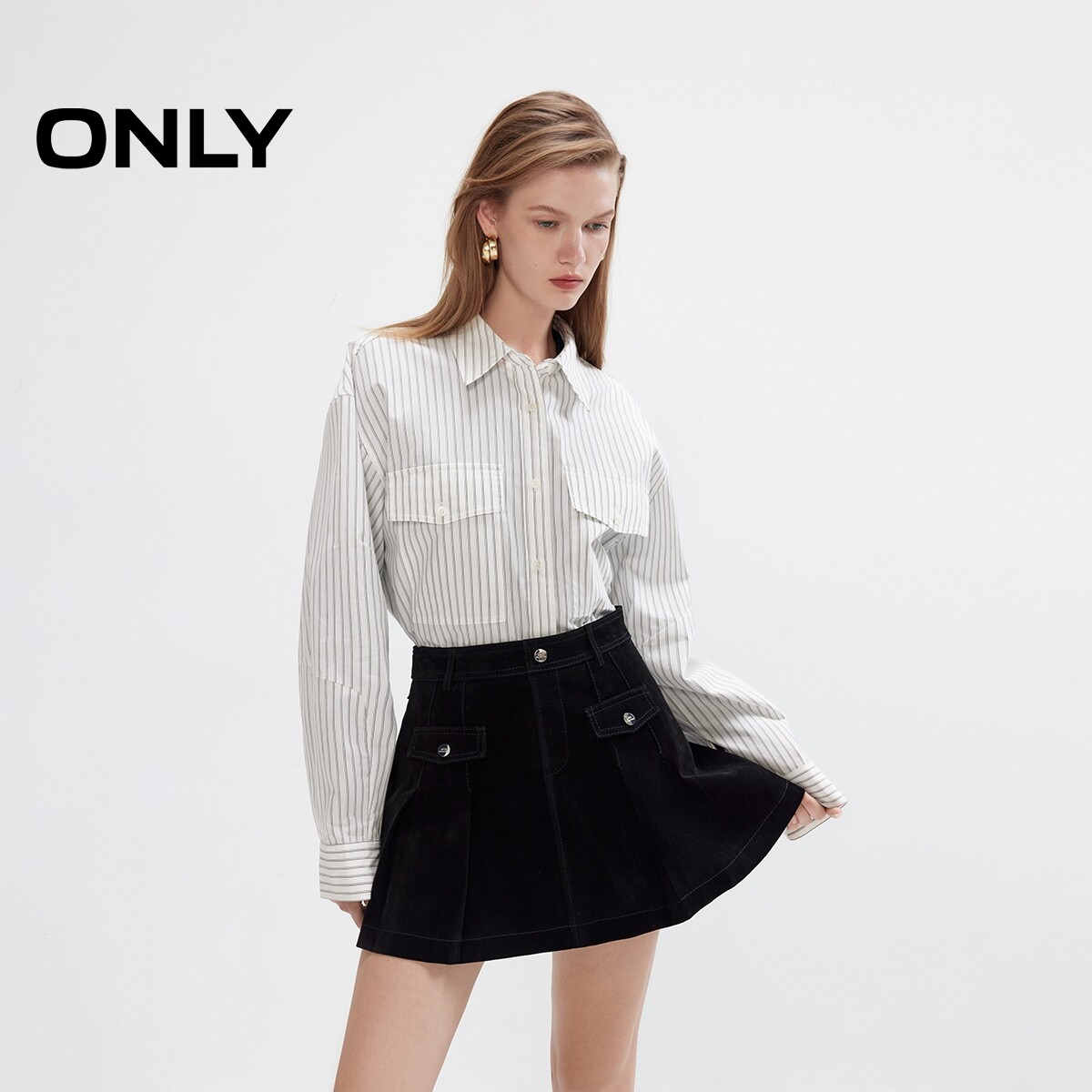 ONLY2025冬新款 12549M004 利落廓形显瘦A字百褶短裙半身裙女