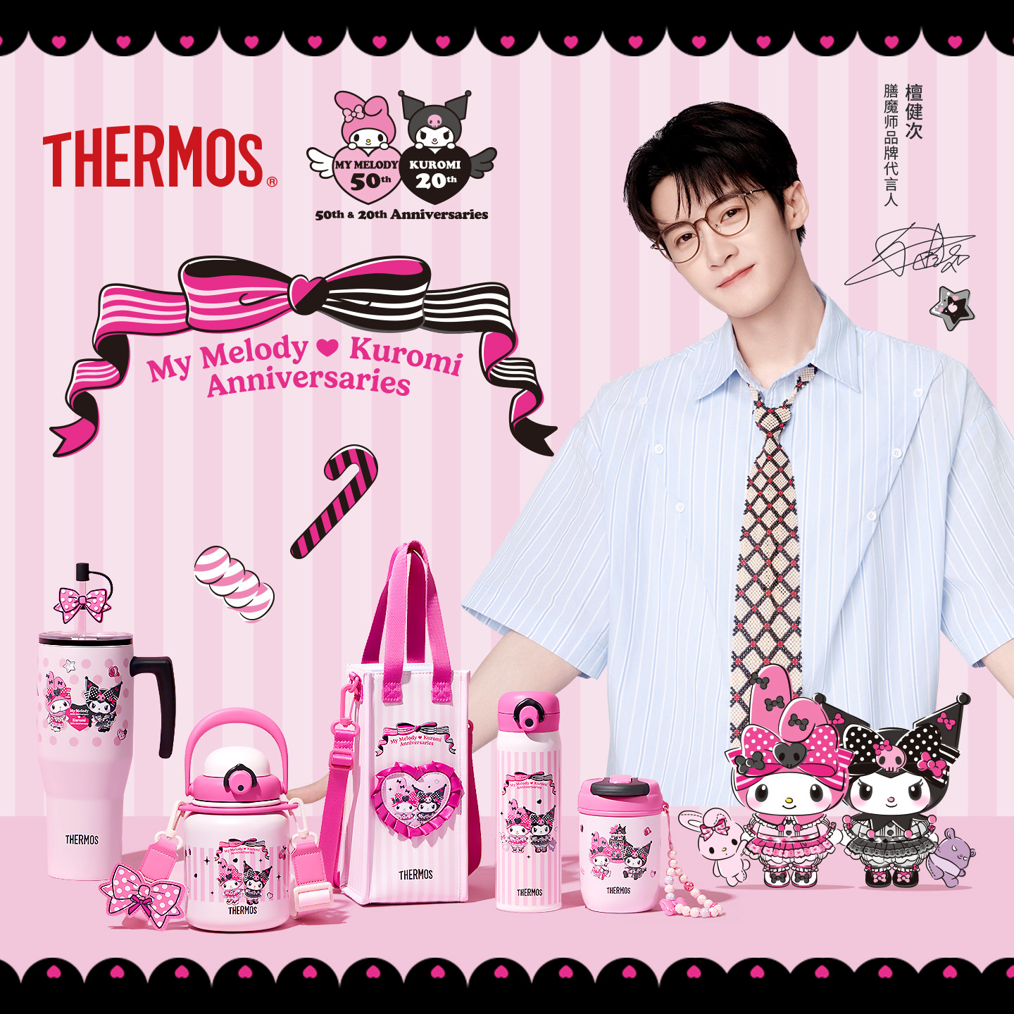 檀健次同款 膳魔师三丽鸥周年系列保温杯双饮吸管咖啡巨无霸水杯子