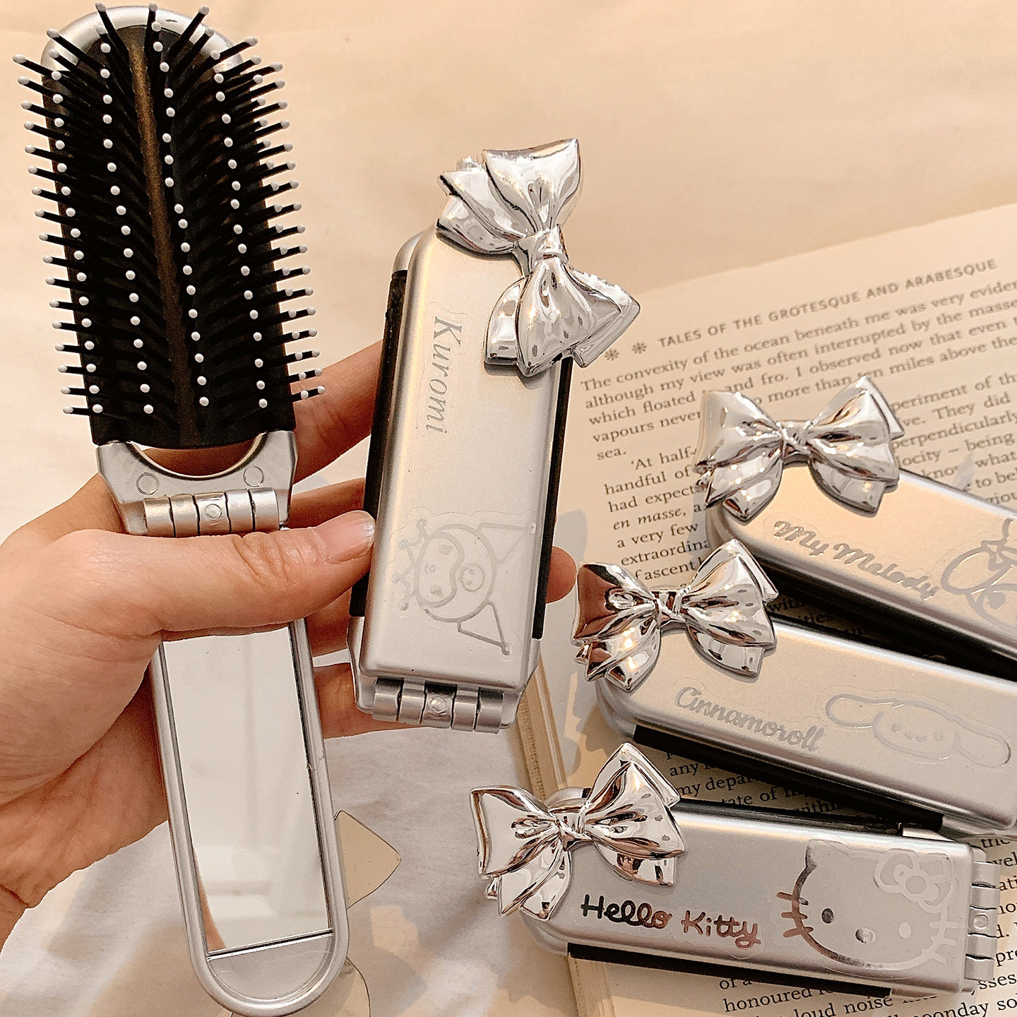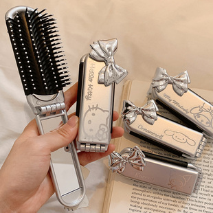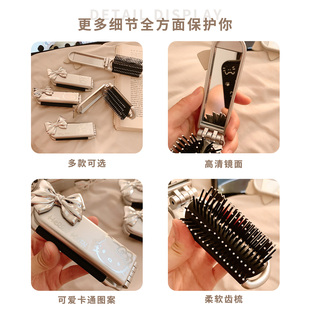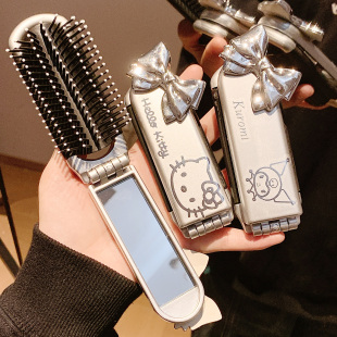 可折叠卡通镜梳一体套装 女孩便携随身刘海梳美乐蒂儿童学生补妆镜
