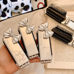 可爱猫咪气囊梳可折叠带镜子可爱卡通便携旅行镜梳套装 日系