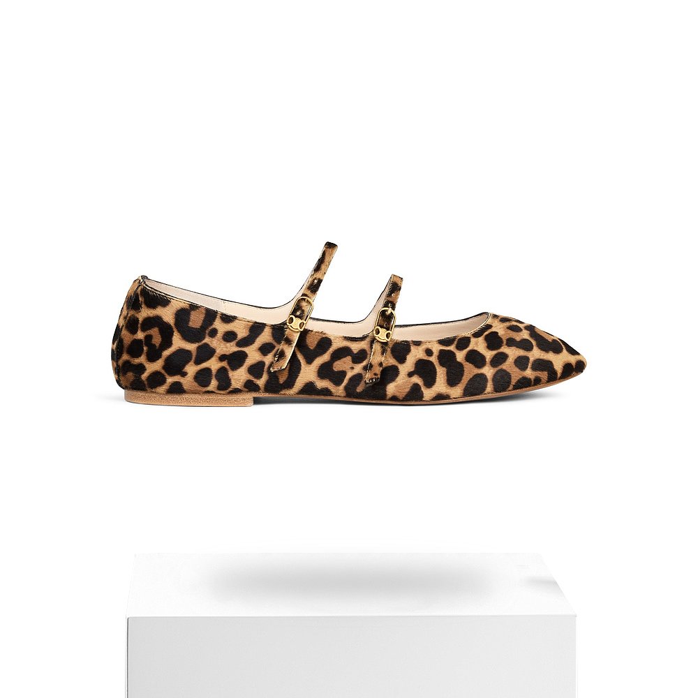 hairy 女士 双带状豹纹印花小牛皮芭蕾平底 思琳 香港直邮Celine