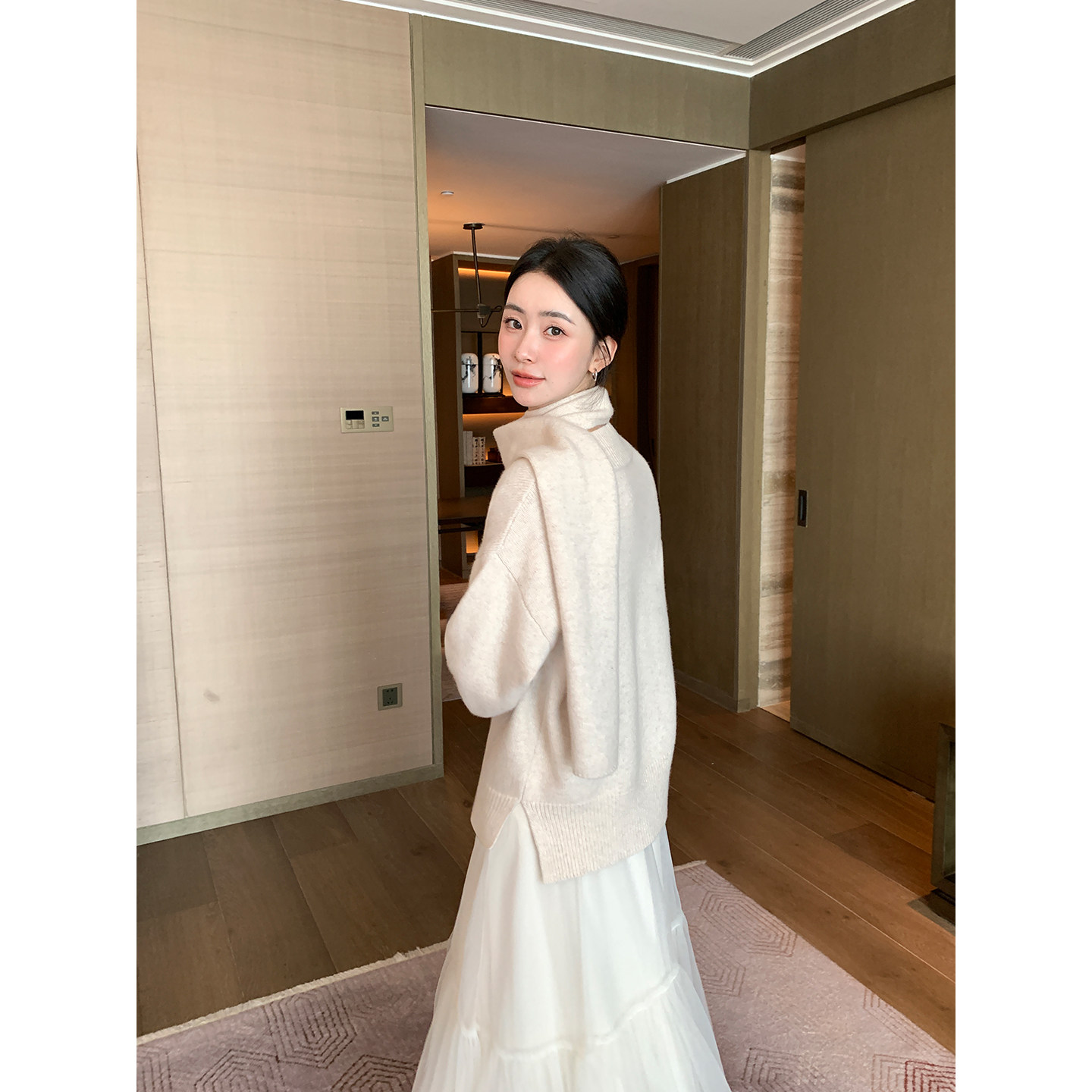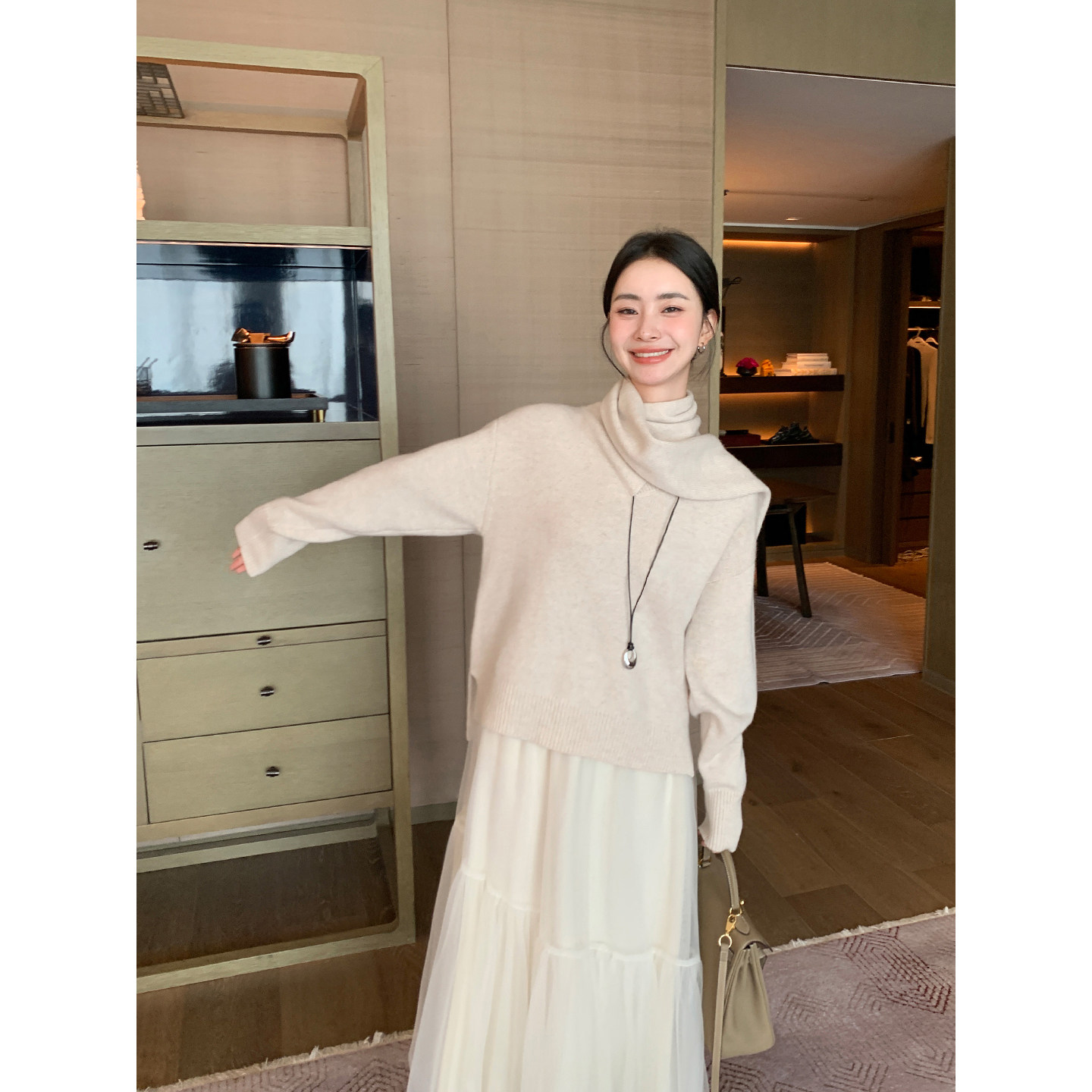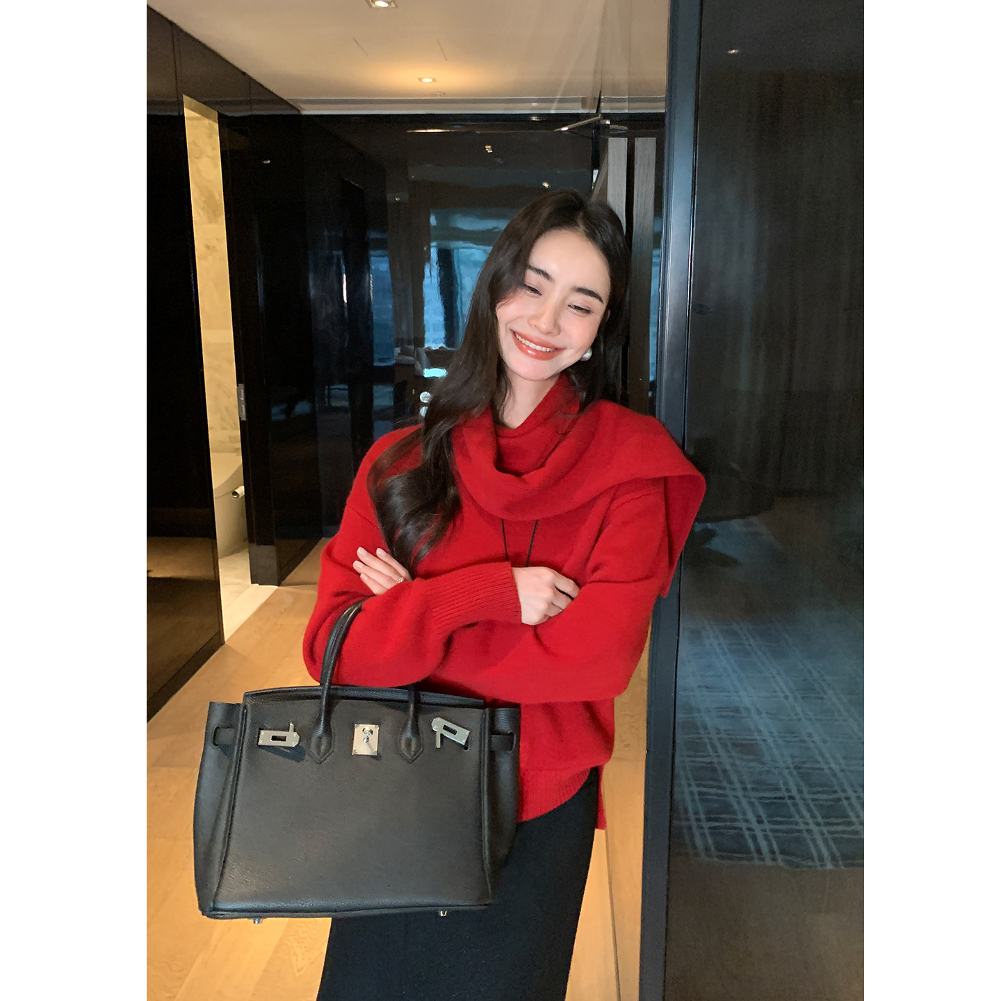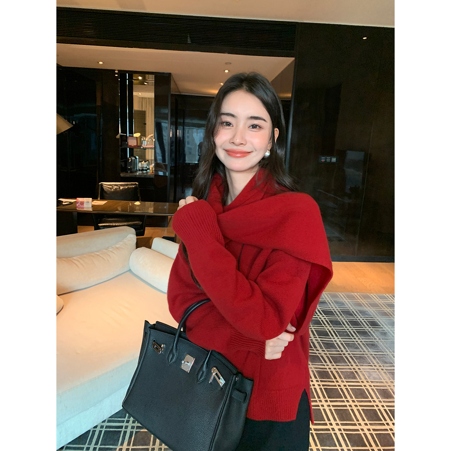 红色毛衣女高级感自带围巾针织衫 Maven 1OO羊毛长袖 主推 Lin